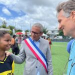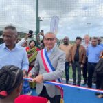 Un stade qui a coûté 1,6 millions d’euros, financé à 90% sur les fonds européens du REACT-UE. La commune aura déboursé 160 000 €. Il va permettre à la municipalité d’offrir un équipement moderne aux jeunes du quartier Fayard et et de récupérer l’actuel terrain qui faisait office de stade, situé devant la maison Martin Valliamé, un site appelé à se développer. Ecoutez Joé Bédier, il est au micro d’Yves Mont-Rouge :
