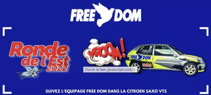 Une voiture de rallye aux couleurs de Radio Free Dom