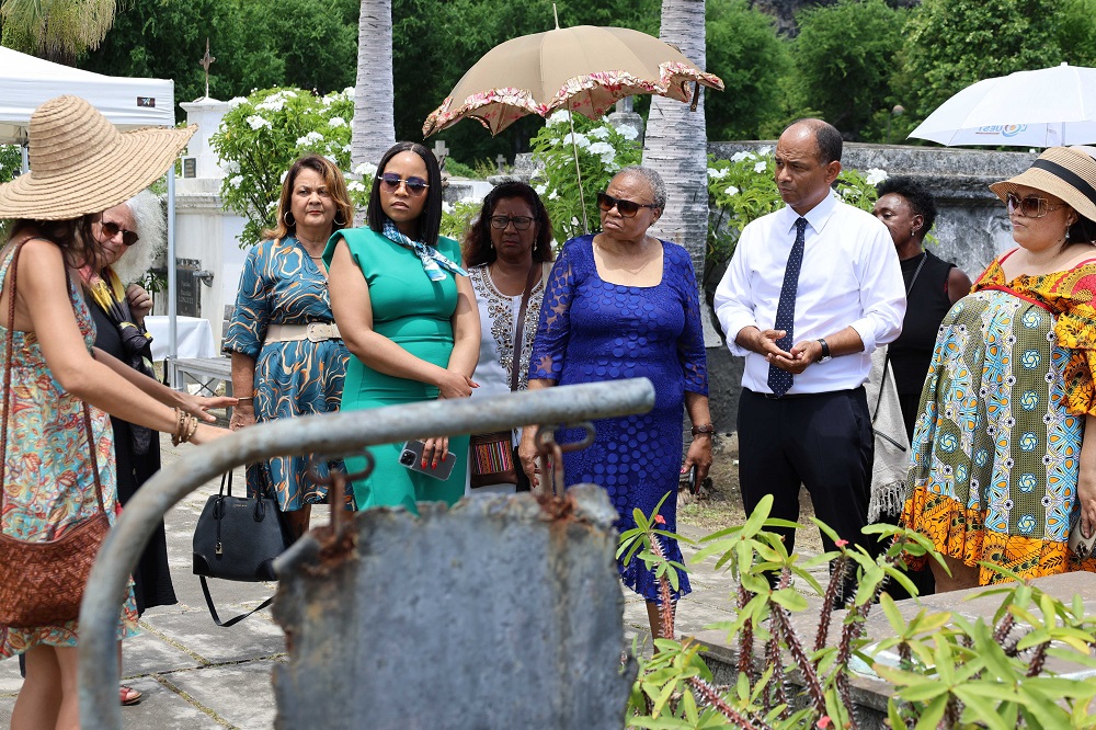 Jeudi, une séquence spéciale s’est déroulée au cimetière marin, où un moment de mémoire était consacré à Delphine Helod, suivie d’un dépôt de gerbe. Le rendez-vous était fixé à 11 heures ce 7 mars au cimetière marin de Saint-Paul. La délégation, comprenant notamment Rita Abraham, a eu l’occasion de se recueillir devant la tombe de Delphine Helod, une figure emblématique de l’histoire locale. Ce moment protocolaire a également été marqué par l’intervention du Maire de la ville, qui a évoqué l’histoire de Saint-Paul et a abordé la condition des femmes depuis les temps anciens jusqu’à nos jours.