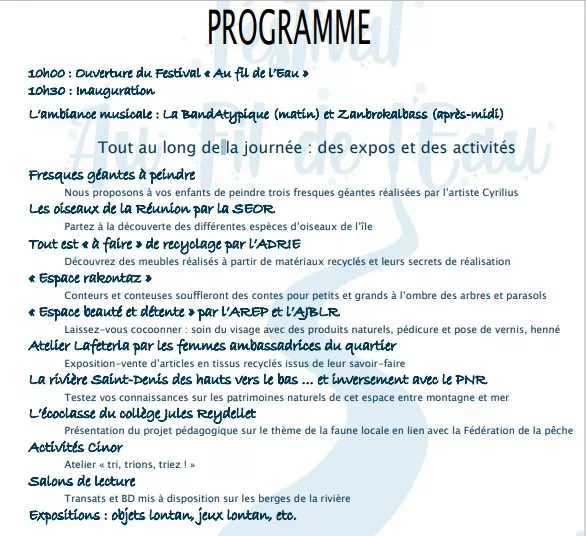 Festival « Au fil de l’eau » : rendez-vous ce samedi sur les berges de la rivière de St-Denis