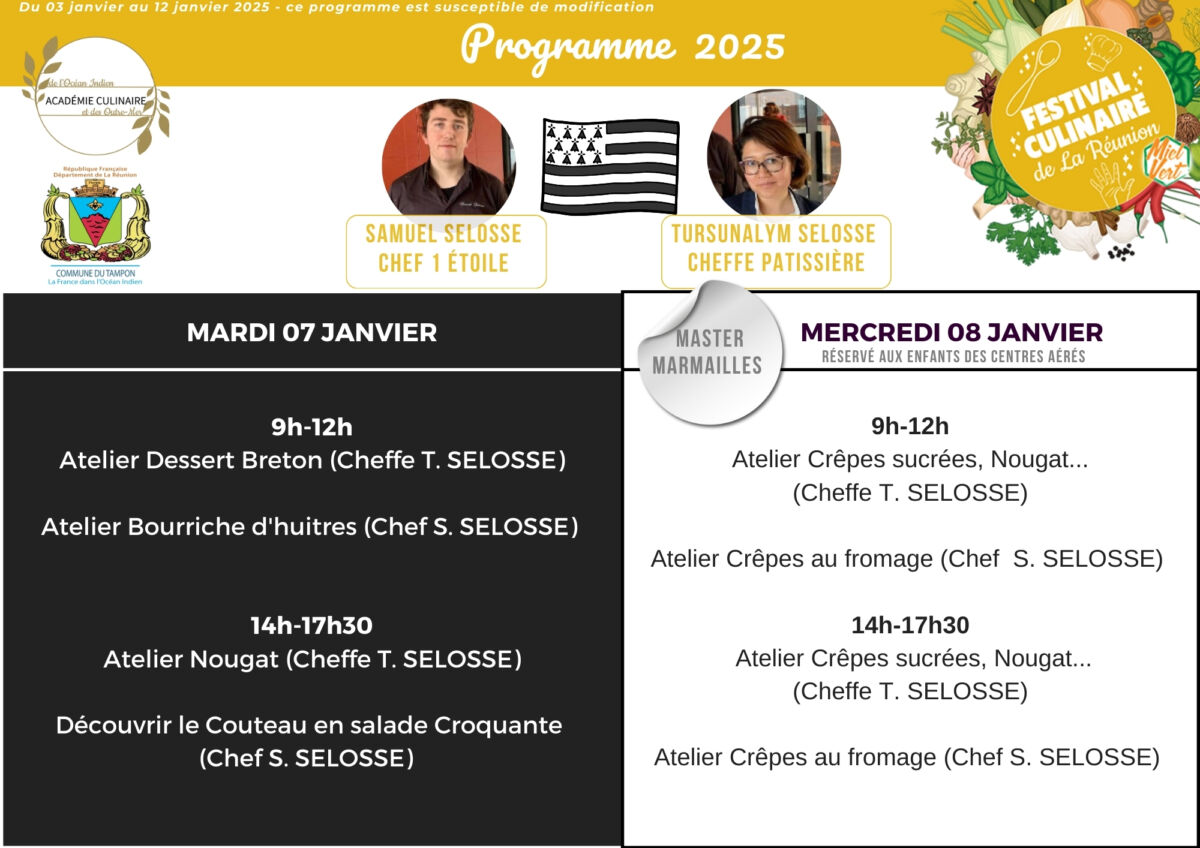 - Cours de cuisine : perfectionnez vos talents avec des chefs de renom venus de La Réunion, de France métropolitaine, et d’autres horizons.