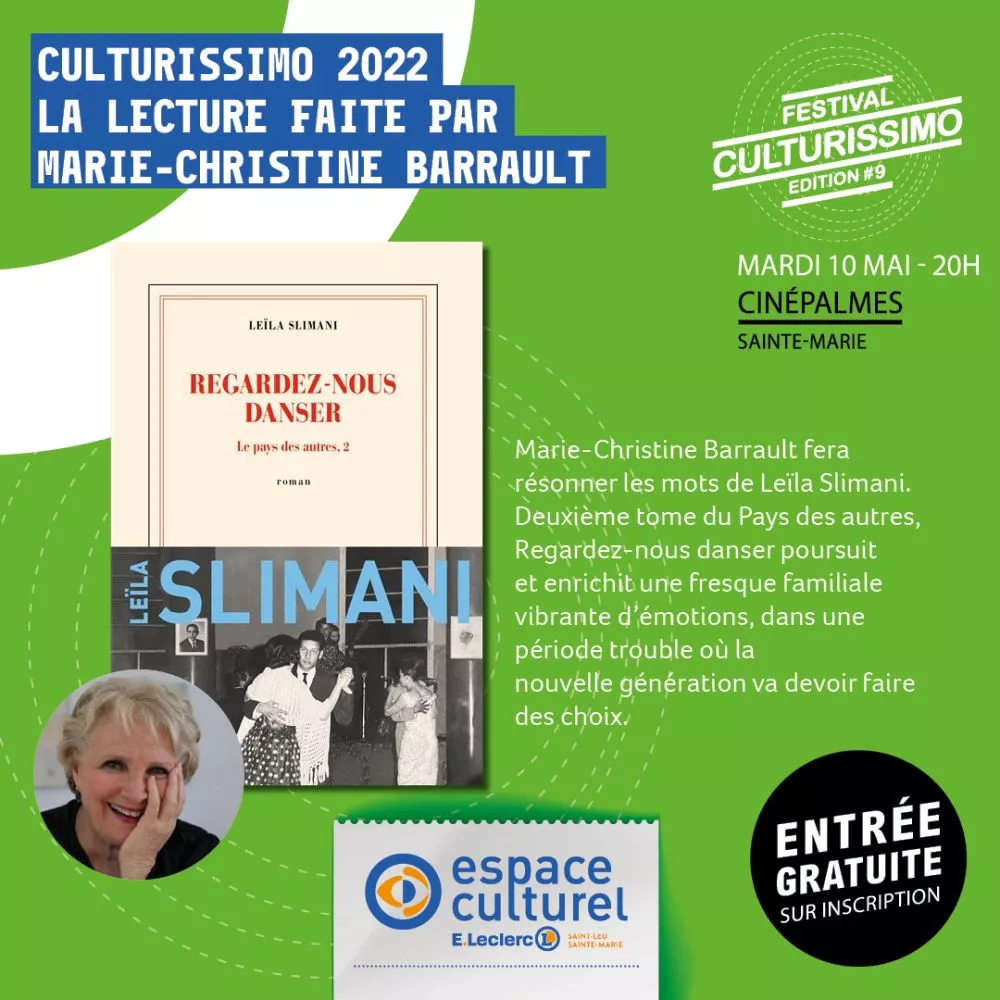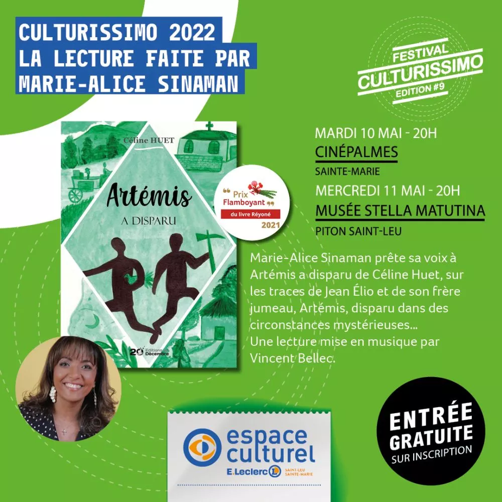 Organisé par l’Espace Culturel E.Leclerc, le festival Culturissimo aura lieu les mardi 10 et mercredi 11 mai prochains au Cinépalmes à Sainte-Marie et au Stella Matutina à Saint-Leu pour deux soirées inédites de lecture. Pour cette 5ème édition à La Réunion, les trois romans sélectionnés pourront compter sur les voix de Marie-Alice Sinaman, humoriste réunionnaise qu’on ne présente plus et Christine Barrault, actrice française reconnue.