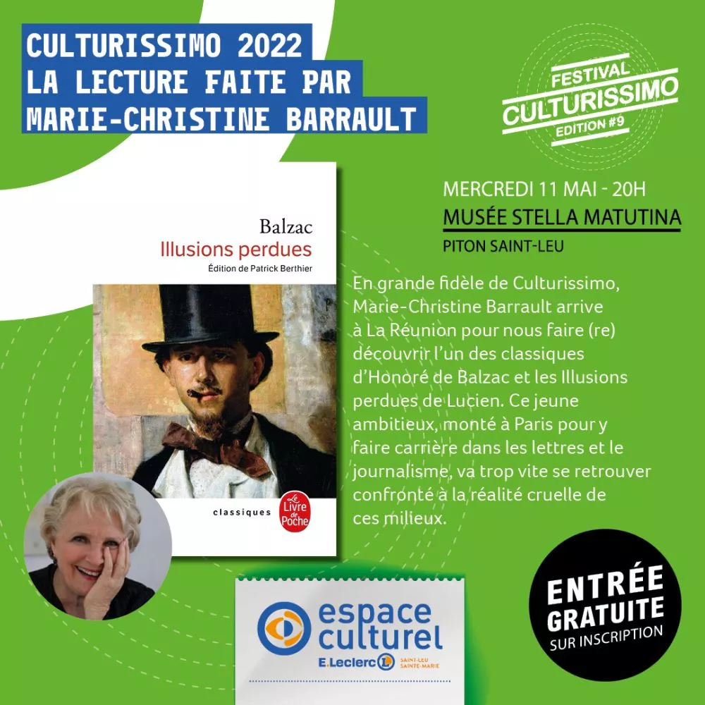 Le festival Culturissimo propose au public réunionnais un coup de projecteur sur des romans et des écrivains en s’appuyant sur l’actualité littéraire mais aussi de redécouvrir les grands classiques de la littérature française. Cette année, pour ces deux occasions, Marie-Alice Sinaman et Christine Barrault liront :