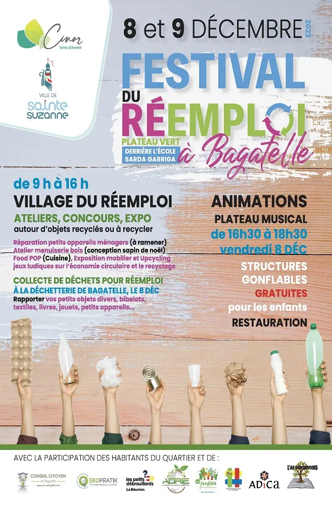 Le Festival du réemploi aura lieu à Bagatelle, sur le plateau vert Sarda Garriga, Ste-Suzanne, les 8 & 9 Décembre.