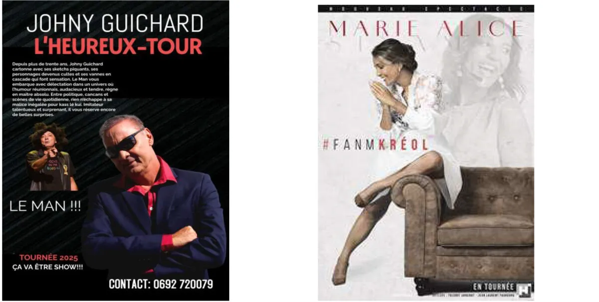 03 mai à 20h00 : Fanm Kréol, le dernier spectacle de la talentueuse Marie Alice Sinaman, qui mêle émotion, rires et identité réunionnaise.