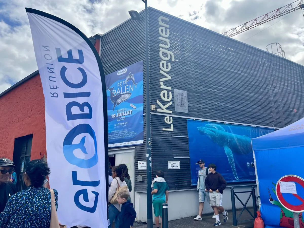 Beaucoup plus de monde que prévu s’est déplacé dès ce matin au Kerveguen à Saint-Pierre pour cette toute première journée dédiée aux baleines. L’ambiance est festive, joyeuse, et les organisateurs sont ravis !