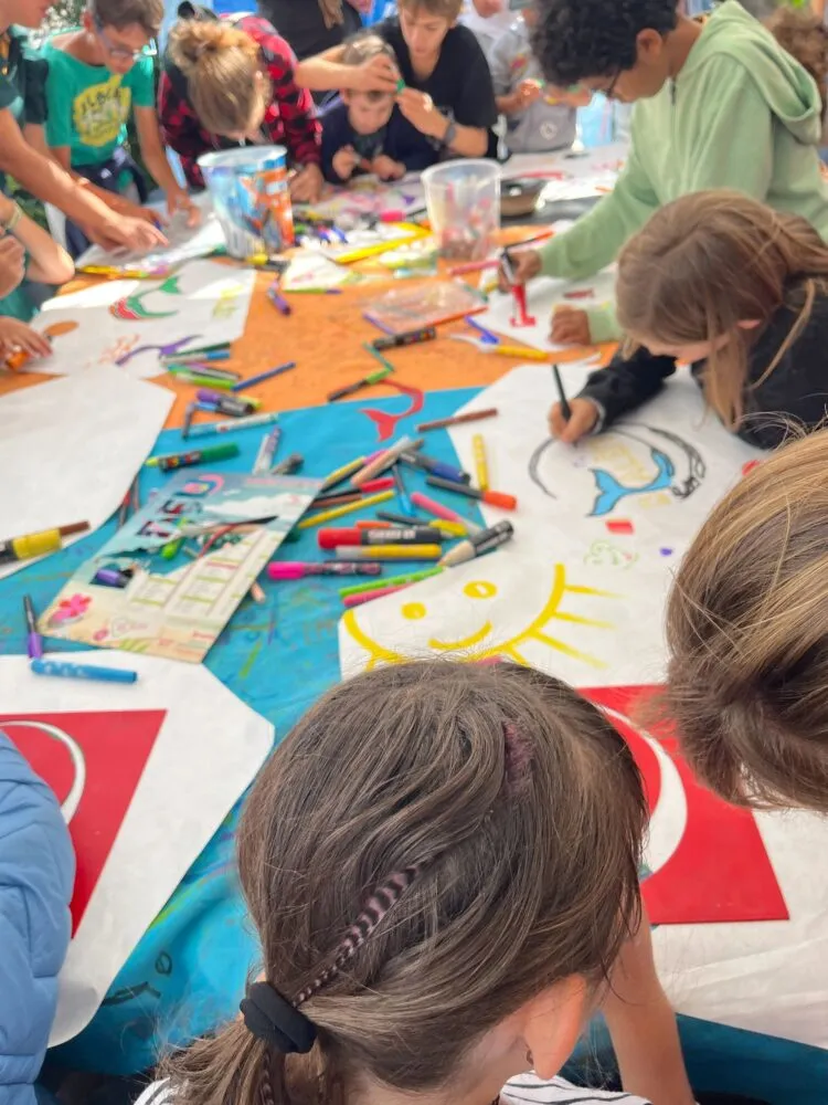 Des ateliers de fresques collectives animés par Lusea sur la terrasse du Kerveguen.