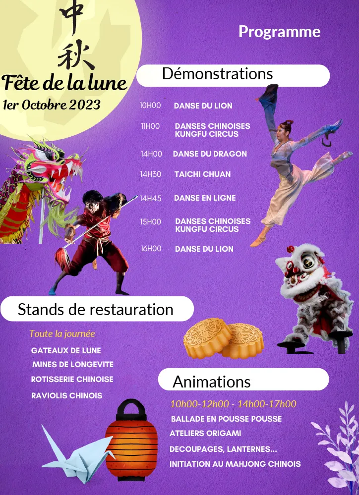 Un éventail d’activités, incluant notamment le mah-jong, des balades en pousse-pousse, ainsi que des ateliers créatifs, est proposé aux visiteurs. De plus, l’événement comprend des démonstrations telles que les danses du lion et du dragon, des performances de danse chinoise, et des exhibitions de Kung fu.