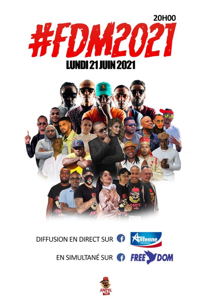 Lundi 21 juin sera célébrée la fête de la musique. À cette occasion, 20 artistes réunionnais du label Kartel Prod donneront un concert dès 20h. Celui-ci sera diffusé en direct sur le facebook d’Antenne Réunion et relayé sur la page Facebook de radio Free Dom. Malgré la crise sanitaire, les artistes sont déterminés à mettre l’ambiance et à nous faire passer un bon moment !