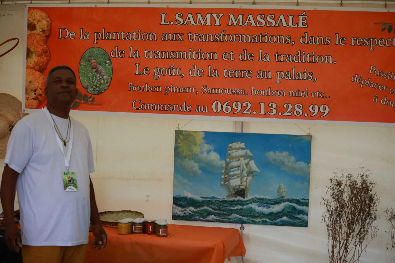 Samy propose pendant toute la durée de la fête ses bonbons piments, samoussas, bonbons miel, préparations salées et une belle variété de plantes transformées. Il est présent sur place du 4 au 7 décembre, disponible pour expliquer son métier, faire goûter, transmettre et simplement discuter avec les visiteurs.