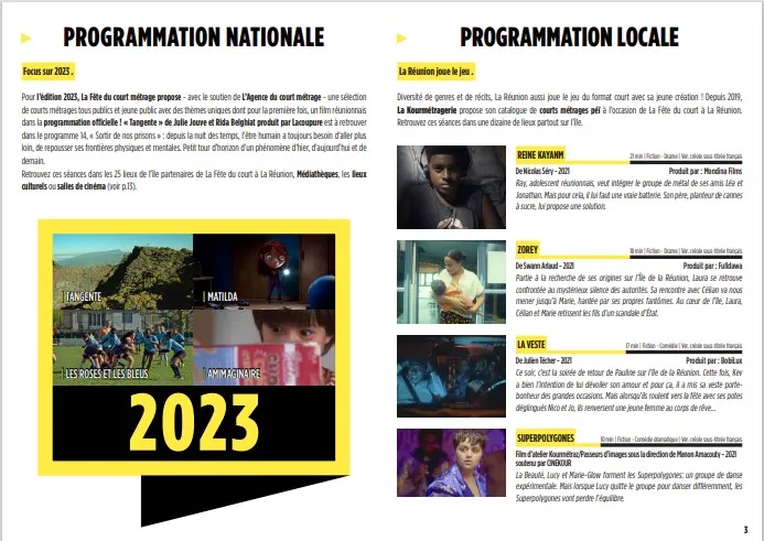 Du 15 au 21 Mars 2023, La Fête du court métrage rayonnera sur l’ensemble de La Réunion à travers des projections, ateliers et rencontres professionnelles, en totale gratuité. Unique territoire d’Outre-Mer à proposer cet événement en 2023, La Réunion est également la seconde région à bénéficier d’un soutien de catégorie 1 avec Marseille en proposant en marge des séances de projection, des rencontres et des ateliers découverte.