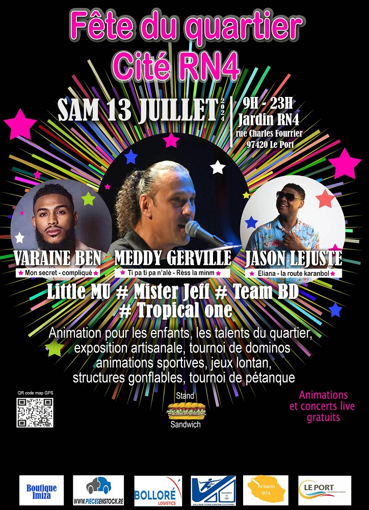 Ce samedi 13 juillet, la ville du Port invite ses habitants et les visiteurs à une journée exceptionnelle de festivités et d’animations lors de la Fête du Quartier RN4. Préparez-vous à vivre une journée mémorable, rythmée par des activités pour tous les âges et des concerts gratuits en plein air.