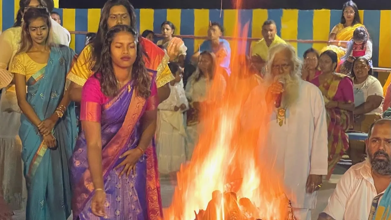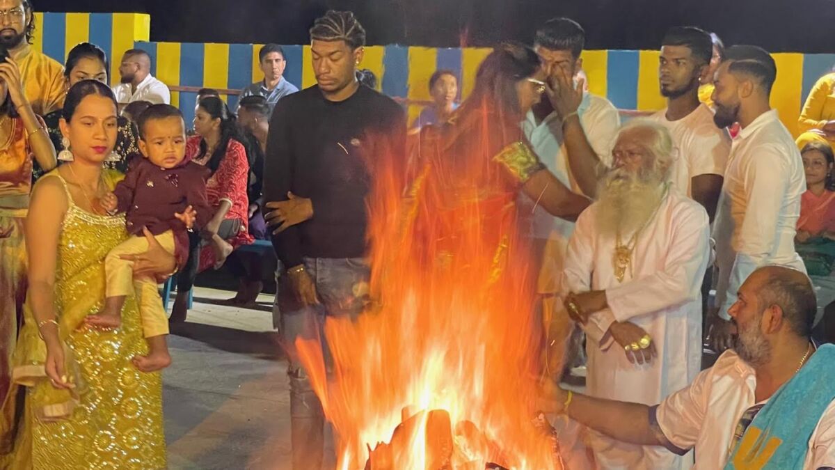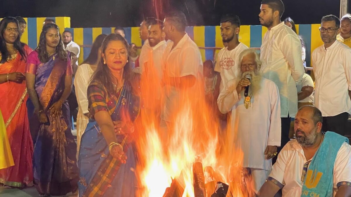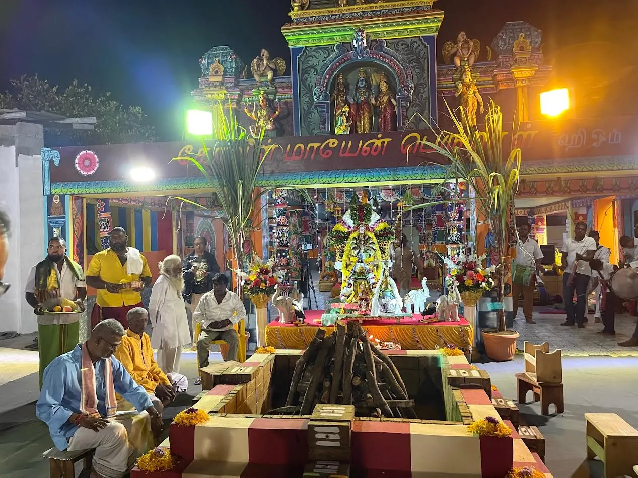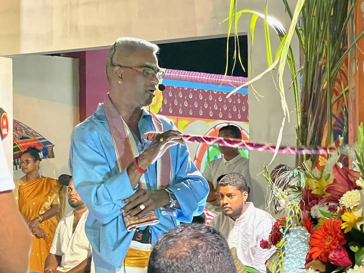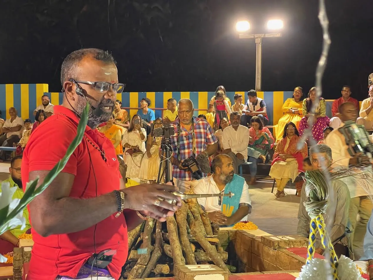 Emmanuel Rangayanaguy, propriétaire des lieux, lui même prêtre tamoul, a réuni plusieurs poussaris pour le yargam (cérémonie qui consiste à brûler de nombreux ingrédients qui se transforment ensuite en fumée pour atteindre Dieu).