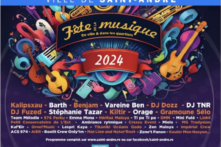 La ville de Saint-André fête la musique en grandes pompes cette année ! Plus de 100 artistes, 16 scènes différentes. DANS LES QUARTIERS Du 18 au 29 juin, Venez admirer et participer aux divers ateliers musicaux , venez écouter et applaudir les nombreux artistes Programme complet sur https://www.saint-andre.re/fete-de-la-musique-3/ EN CENTRE VILLE Venez vous ambiancer au grand concert le 22 juin avec les artistes…