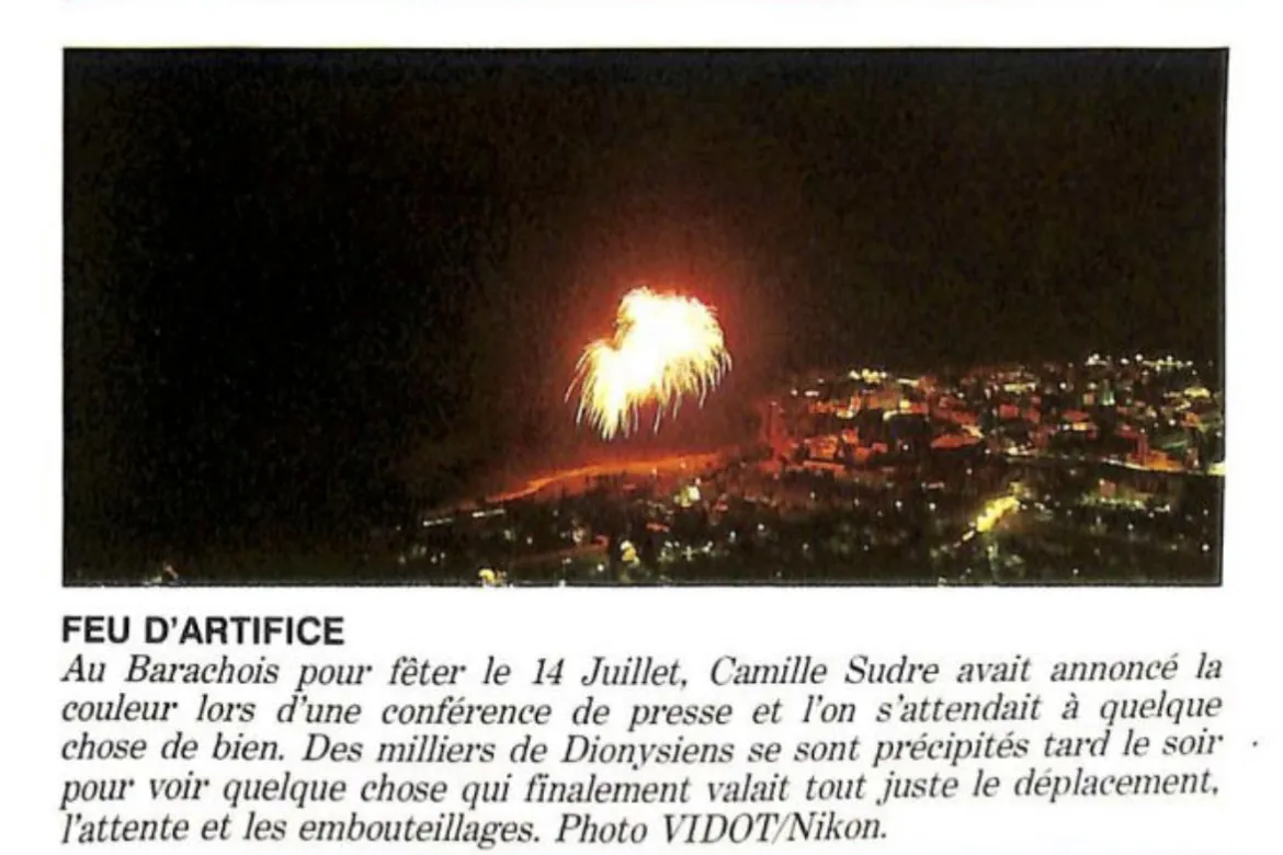 Il y a 34 ans, pour le bicentenaire de la révolution française, Camille Sudre avait remis à l’ordre du jour le feu d’artifice du 14 juillet et les festivités du Barachois. Il était, à l’époque, le président du Comité des Fêtes et entendait remettre cette tradition à l’honneur à la Réunion.