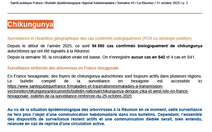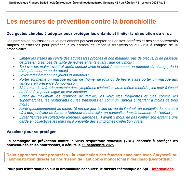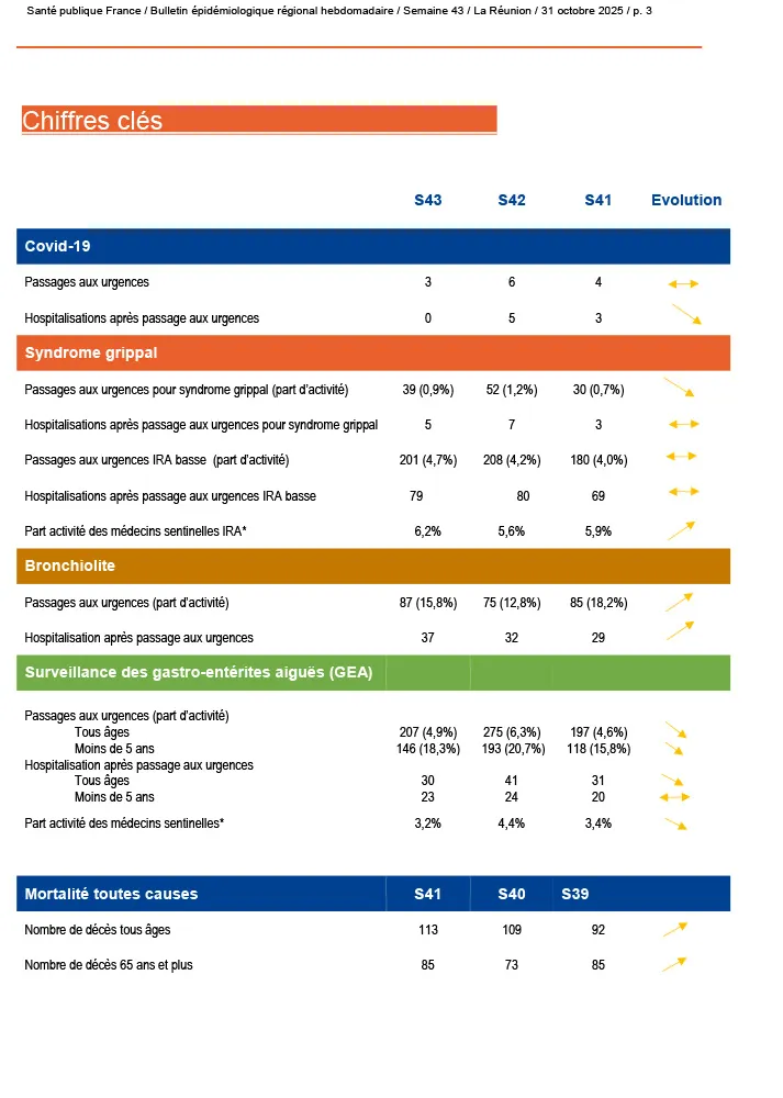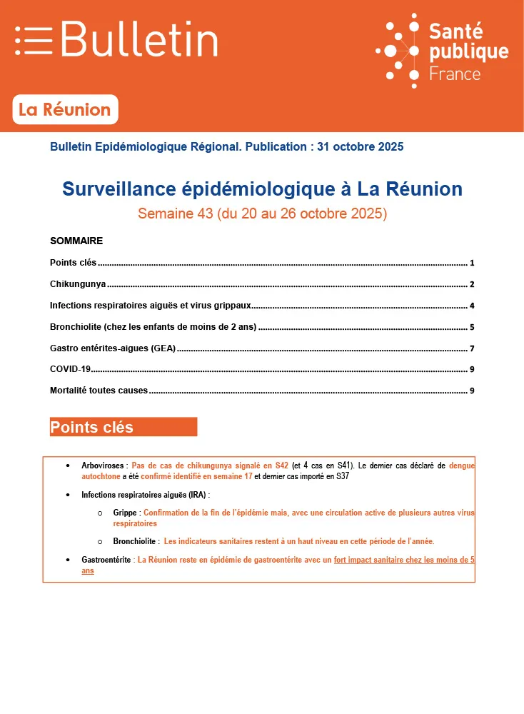 Point épidémiologique régional de la semaine 43  (du 20 au 26 octobre 2025) :