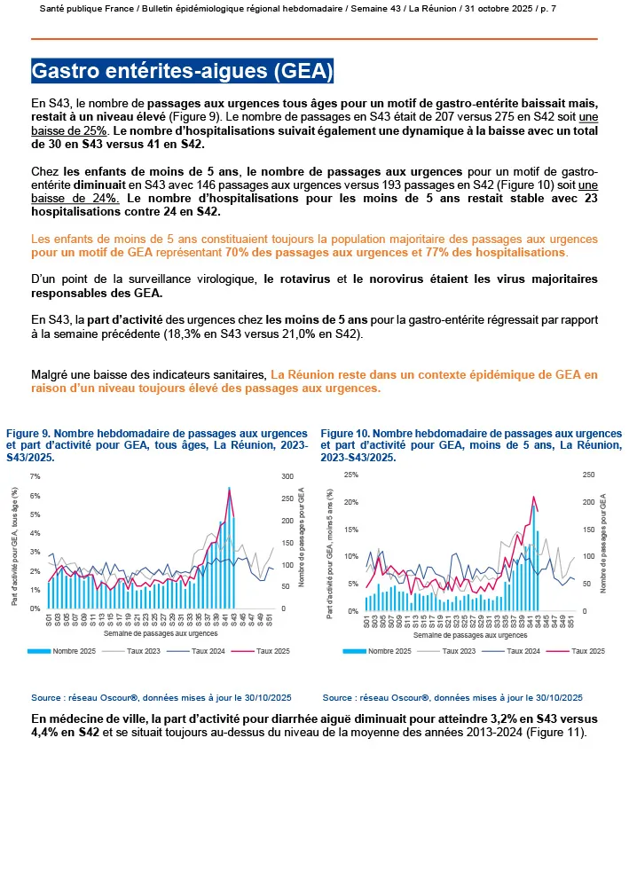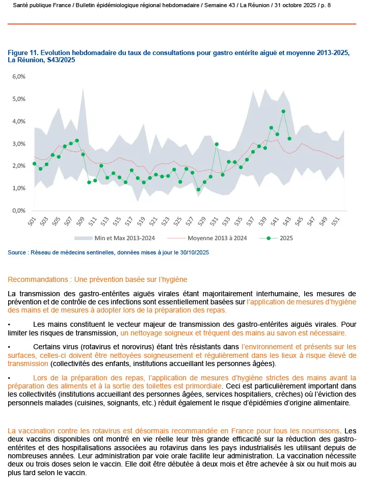 • Gastroentérite La Réunion reste en épidémie de gastroentérite avec un fort impact sanitaire chez les moins de 5 ans