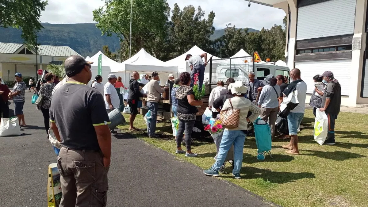 Dès 7h30 ce samedi matin, ils étaient nombreux à se présenter au stand de la CIREST pour récupérer leur sac de compost.