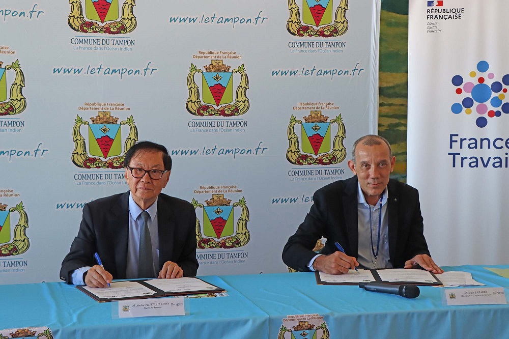 Ce mardi 23 avril, André Thien Ah Koon, Maire du Tampon et Alain Lazarre, directeur de l’agence France Travail du Tampon ont signé une convention de partenariat afin de formaliser leurs actions conjointes en faveur de l’emploi sur le territoire tamponnais.