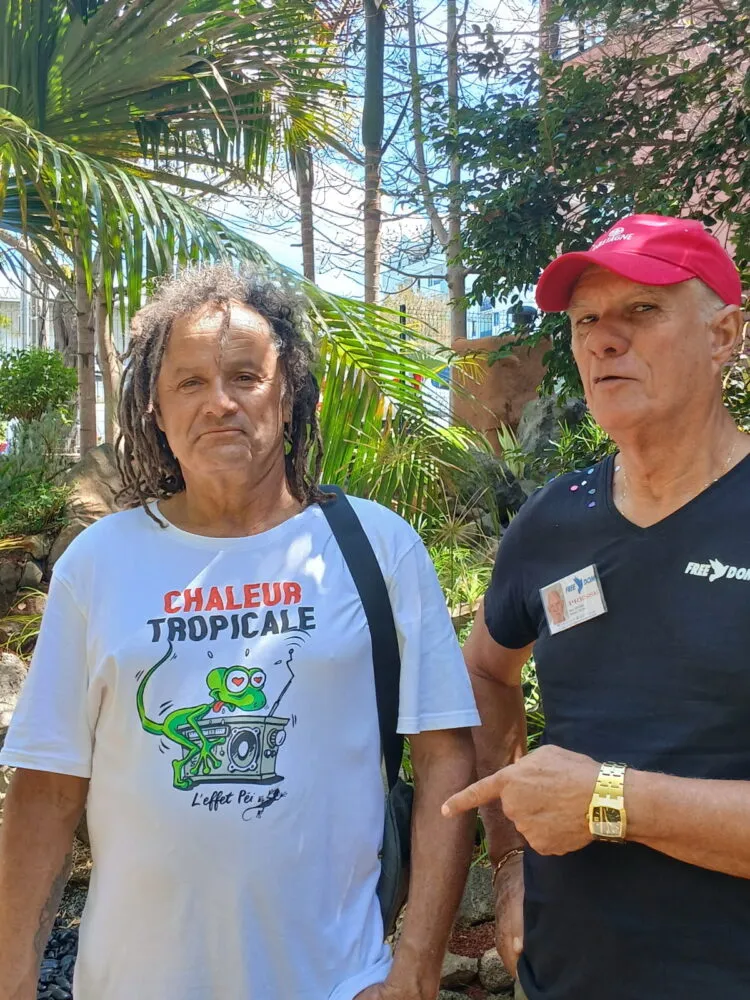 Fredo avec un fan de Chaleur tropicale (création l’effet Péi)
