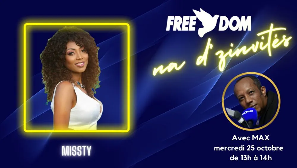 Free Dom Na D'Zinvités Freedom Na d’Zinvités en Replay : rencontre exclusive avec la talentueuse Missty par Céline Hardelain 25 octobre 2023 1 min de lecture Le mercredi 25 octobre 2023, Freedom Na d’Zinvités présentera une émission exceptionnelle en direct de nos ondes, mettant en vedette la talentueuse Missty. Elle partagera son histoire et sa passion pour la musique avec Max de 13h à 14h. Ne manquez pas toute l’actualité de La Réunion ! Abonnez-vous à la newsletter de Free Dom ! Valider Partager Facebook Twitter Pinterest Linkedin Whatsapp Reddit Email Vous pourriez être intéressé par 23 octobre 2025 Alain Llorca du groupe Gold dans les studios de Radio Free Dom (Podcasts-VIDEOS) 27 août 2025 Free Dom na d’zinvités ; Replay disponible : Missty en live sur Free Dom ! 2 juillet 2025 Free Dom Na D’Zinvités en Replay : une heure de maloya avec Kultur Bourbon Céline Hardelain Laisser un commentaire Annuler la réponseYour email address will not be published. Enregistrer mon nom, mon e-mail et mon site dans le navigateur pour mon prochain commentaire. Current ye@r * Leave this field empty Article précédent Emmanuelle et Emilie Ivara, invitées spéciales de Free Dom n’a d’zinvités ce 18 octobre (Replay) Article suivant Freedom Na d’Zinvités en Replay : Dominique Barret était dans nos studios ce 8 novembre Articles récents... Hommage à Johnny Hallyday sur Free Dom 2 ce 5 décembre Mardi 30 décembre 2025 – Météo, éphéméride et horoscope du jour Saint-Joseph : découverte de 2337 plants de cannabis, arrestation de 2 individus Point sur le réseau routier départemental, 29 décembre à 16H30 Suicide sur le pont de la Rivière d’Abord : importante mobilisation des secours et des forces de l’ordre Radier submergé à Ilet Furcy : la route de Cilaos fermée à la circulation cette nuit Fortes pluies : appel à la plus grande prudence à Saint-Paul Saint-Gilles-les-Bains : une route impraticable, les riverains montent au créneau (VIDEOS) Très grands excès de vitesse : un délit passible de prison depuis le 29 décembre 2025 Fermeture temporaire du sentier de la Canalisation des Orangers (cirque de Mafate)