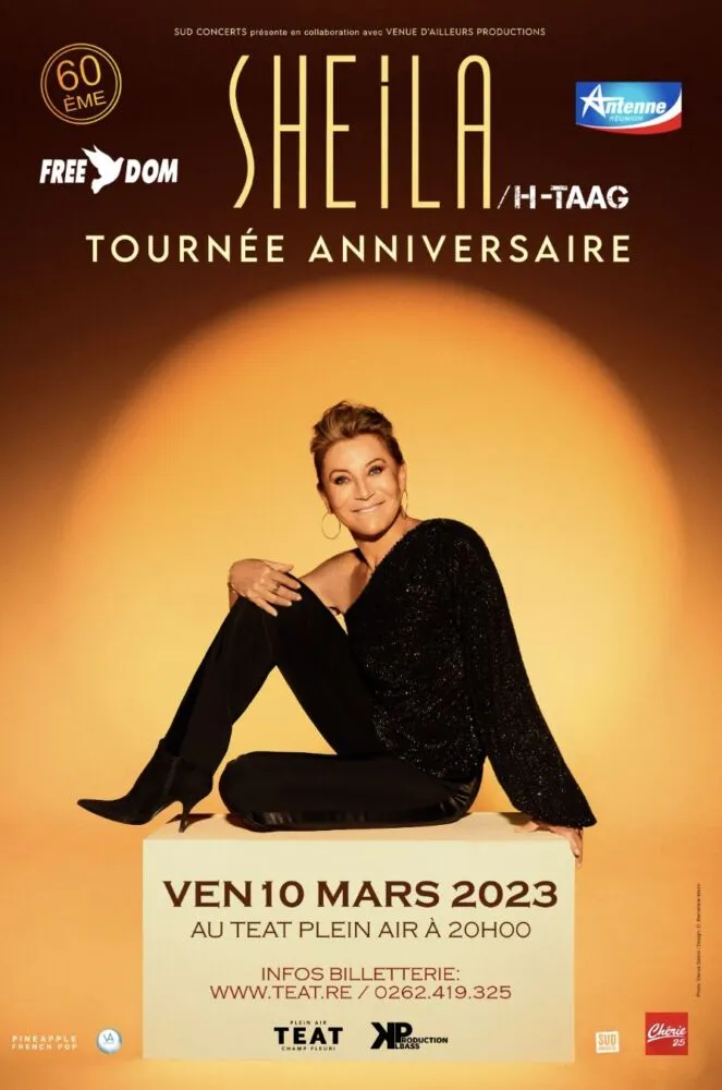 Sheila, la célèbre chanteuse des années 60 sera en concert en mars 2023 à La Réunion.  Elle se produira le 10 mars prochain sur la scène du Théâtre en Plein Air de Saint Gilles. Free Dom est partenaire de cet important événement musical du mois de mars.