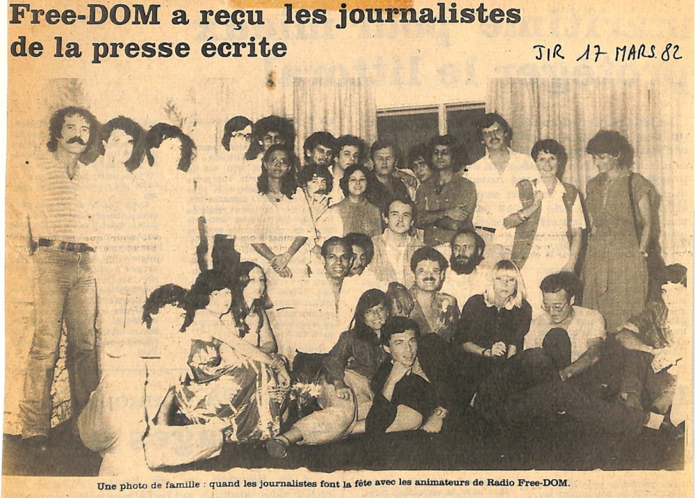 1982 Free Dom reçoit les journalistes de la presse écrite par La Rédaction 17 mars 1982 1 min de lecture Vous reconnaissez des visages de l’époque ? Ne manquez pas toute l’actualité de La Réunion ! Abonnez-vous à la newsletter de Free Dom ! Valider Partager Facebook Twitter Pinterest Linkedin Whatsapp Reddit Email Vous pourriez être intéressé par 10 décembre 1982 Un canular par jour sur Radio Free Dom 11 octobre 1982 L’émission « pas de canard sans navet » 7 octobre 1982 L’émission « bleu outre-mer ou la radio de la méduse… » La Rédaction Laisser un commentaire Annuler la réponseYour email address will not be published. Enregistrer mon nom, mon e-mail et mon site dans le navigateur pour mon prochain commentaire. Current ye@r * Leave this field empty Article précédent Soirée amicale à l’hôtel Saint-François Article suivant Coup de gueule de Jean-Paul Ciret à propos d’une phrase écrite par Josiane Corvi dans le JIR Articles récents... Hommage à Johnny Hallyday sur Free Dom 2 ce 5 décembre Mardi 30 décembre 2025 – Météo, éphéméride et horoscope du jour Saint-Joseph : découverte de 2337 plants de cannabis, arrestation de 2 individus Point sur le réseau routier départemental, 29 décembre à 16H30 Suicide sur le pont de la Rivière d’Abord : importante mobilisation des secours et des forces de l’ordre Radier submergé à Ilet Furcy : la route de Cilaos fermée à la circulation cette nuit Fortes pluies : appel à la plus grande prudence à Saint-Paul Saint-Gilles-les-Bains : une route impraticable, les riverains montent au créneau (VIDEOS) Très grands excès de vitesse : un délit passible de prison depuis le 29 décembre 2025 Fermeture temporaire du sentier de la Canalisation des Orangers (cirque de Mafate)