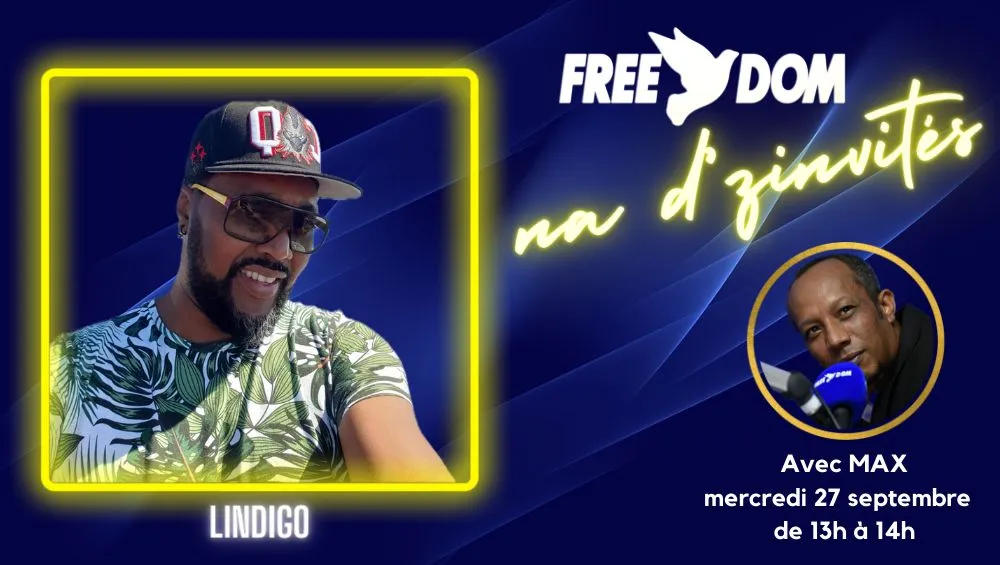 Free Dom Na D'Zinvités Freedom na d’zinvités en Replay : Lindigo dans nos studios ce 27 septembre par Céline Hardelain 27 septembre 2023 1 min de lecture Avant de faire le tour du monde, le groupe Lindigo a pris place dans les studios de Free Dom ce mercredi 27 septembre, de 13h à 14h, dans « Free Dom na d’zinvités ». Revivez cette émission dans ce replay : Ne manquez pas toute l’actualité de La Réunion ! Abonnez-vous à la newsletter de Free Dom ! Valider Partager Facebook Twitter Pinterest Linkedin Whatsapp Reddit Email Vous pourriez être intéressé par 23 octobre 2025 Alain Llorca du groupe Gold dans les studios de Radio Free Dom (Podcasts-VIDEOS) 27 août 2025 Free Dom na d’zinvités ; Replay disponible : Missty en live sur Free Dom ! 2 juillet 2025 Free Dom Na D’Zinvités en Replay : une heure de maloya avec Kultur Bourbon Céline Hardelain Laisser un commentaire Annuler la réponseYour email address will not be published. Enregistrer mon nom, mon e-mail et mon site dans le navigateur pour mon prochain commentaire. Current ye@r * Leave this field empty Article précédent REPLAY : Benjam Article suivant Freedom Na D’Zinvités : Sega’el était l’invitée de Max ce 4 octobre (Replay) Articles récents... Hommage à Johnny Hallyday sur Free Dom 2 ce 5 décembre Mardi 30 décembre 2025 – Météo, éphéméride et horoscope du jour Saint-Joseph : découverte de 2337 plants de cannabis, arrestation de 2 individus Point sur le réseau routier départemental, 29 décembre à 16H30 Suicide sur le pont de la Rivière d’Abord : importante mobilisation des secours et des forces de l’ordre Radier submergé à Ilet Furcy : la route de Cilaos fermée à la circulation cette nuit Fortes pluies : appel à la plus grande prudence à Saint-Paul Saint-Gilles-les-Bains : une route impraticable, les riverains montent au créneau (VIDEOS) Très grands excès de vitesse : un délit passible de prison depuis le 29 décembre 2025 Fermeture temporaire du sentier de la Canalisation des Orangers (cirque de Mafate)