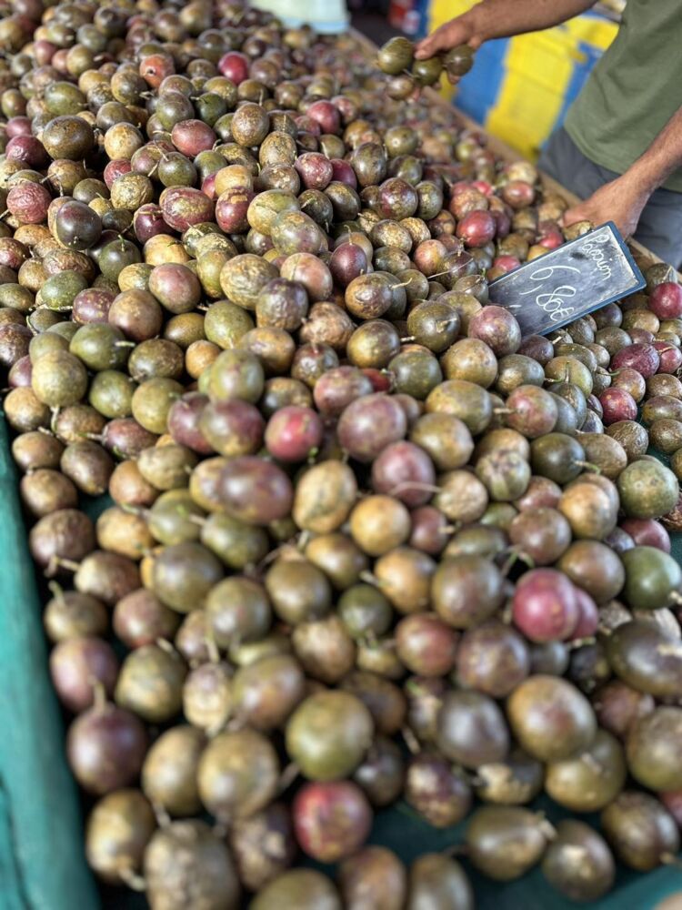 Quand certains médias s’amusent à annoncer la « pseudo » rareté des fruits de la passion, on vous rassure, il y en a plein, et les cultivateurs nous ont confirmé qu’ils sont même très souvent obligés de revendre à des grossistes, les prix constatés ce matin au marché du Chaudron sont de 4,90 € jusqu’à 12 € selon la variété et la grosseur.