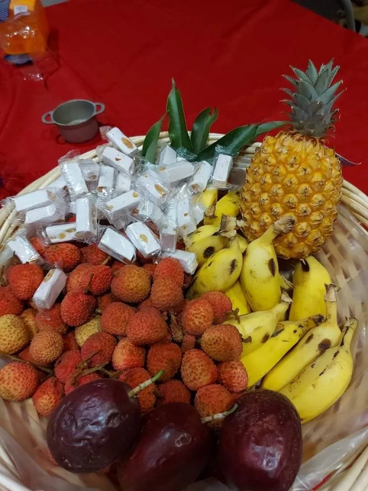 Un beau moment de partage et de solidarité avec au menu cabri massalé, rougail saucisse, carry crevette, civet zourite, civet oies, canard à la vanille, achard, bouchon, salade chinoise, samoussa, pâté créole, nem et en dessert des fruits (letchis, fruit de la passion, banane, ananas…) et chemin de fer.