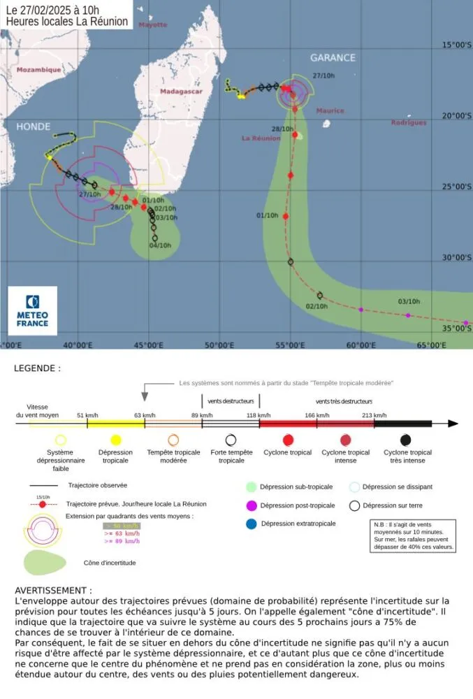Le 27 février à 10h18 locales (09h18 à Mayotte), Météo France a mis en alerte concernant le cyclone Garance, actuellement à 290 km au nord de La Réunion. Ce phénomène, devenu un cyclone tropical intense, génère des vents de 165 km/h, avec des rafales atteignant jusqu’à 230 km/h.