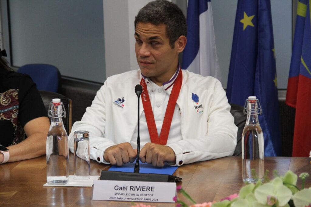 Aujourd’hui, l’Hôtel de Région a accueilli avec fierté Gaël Rivière, médaillé d’or et champion olympique de cécifoot aux Jeux Paralympiques de Paris 2024. Cette visite marque un moment de célébration pour La Réunion et son sport, alors que ce grand champion fait briller notre île sur la scène internationale grâce à ses performances remarquables.