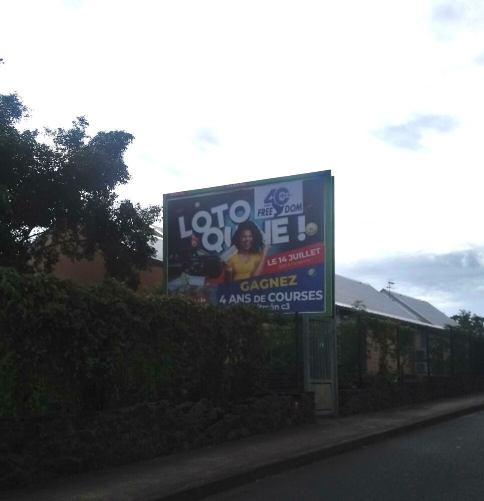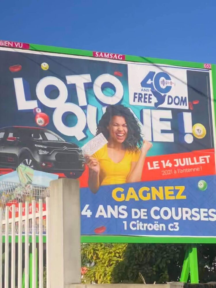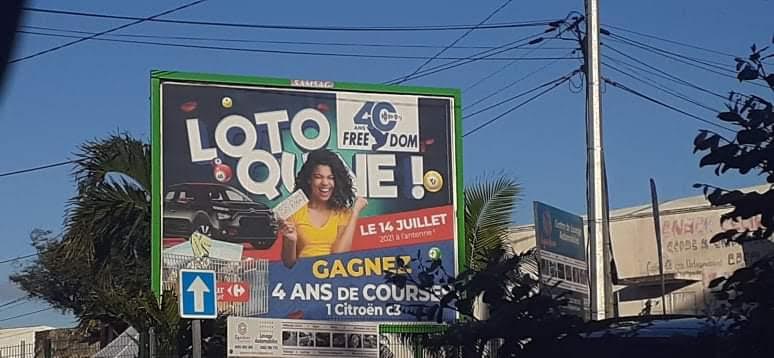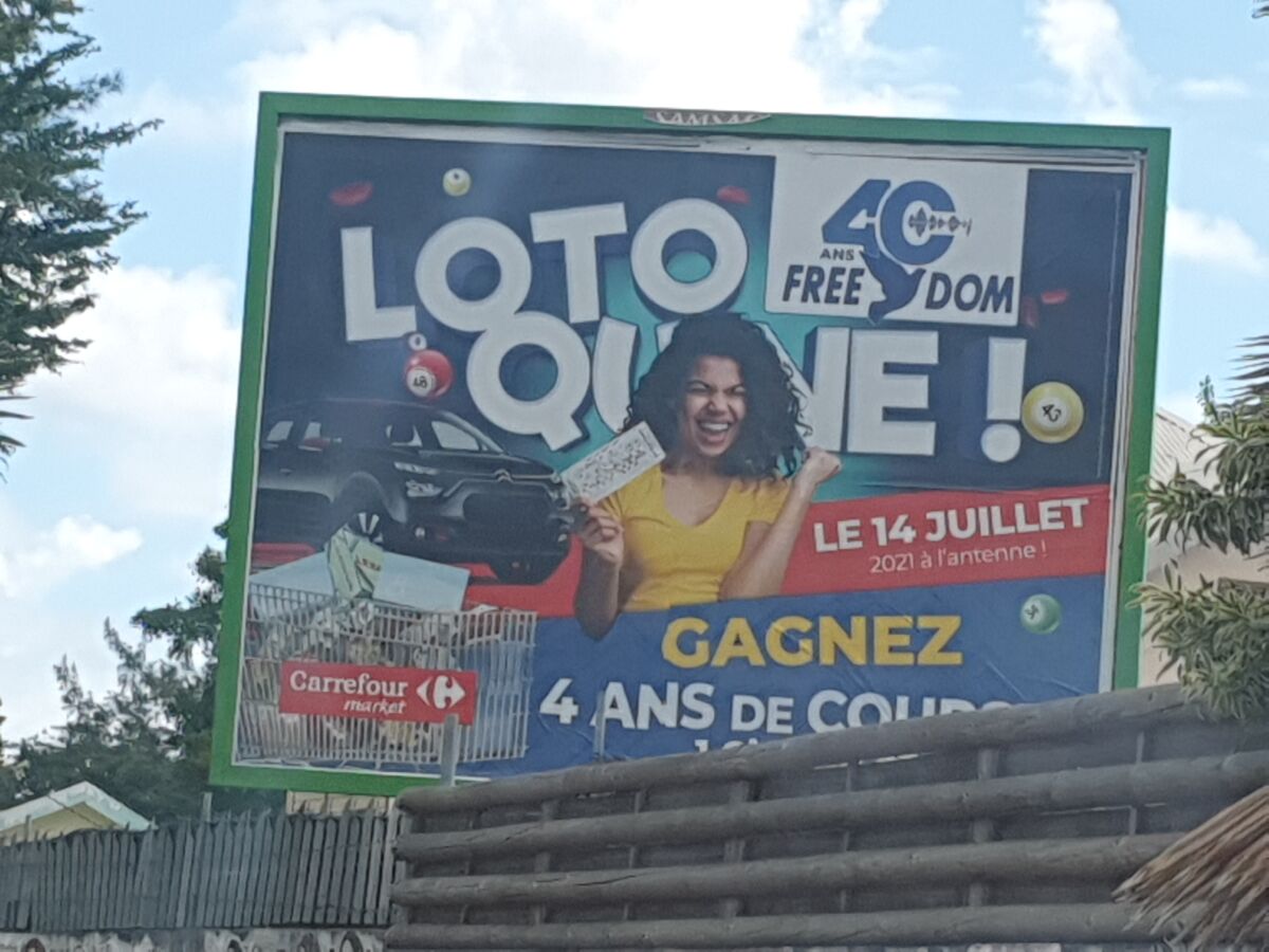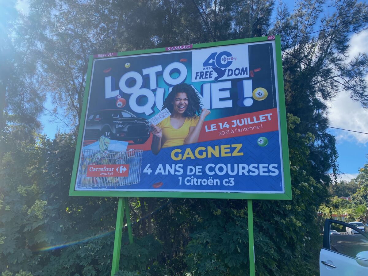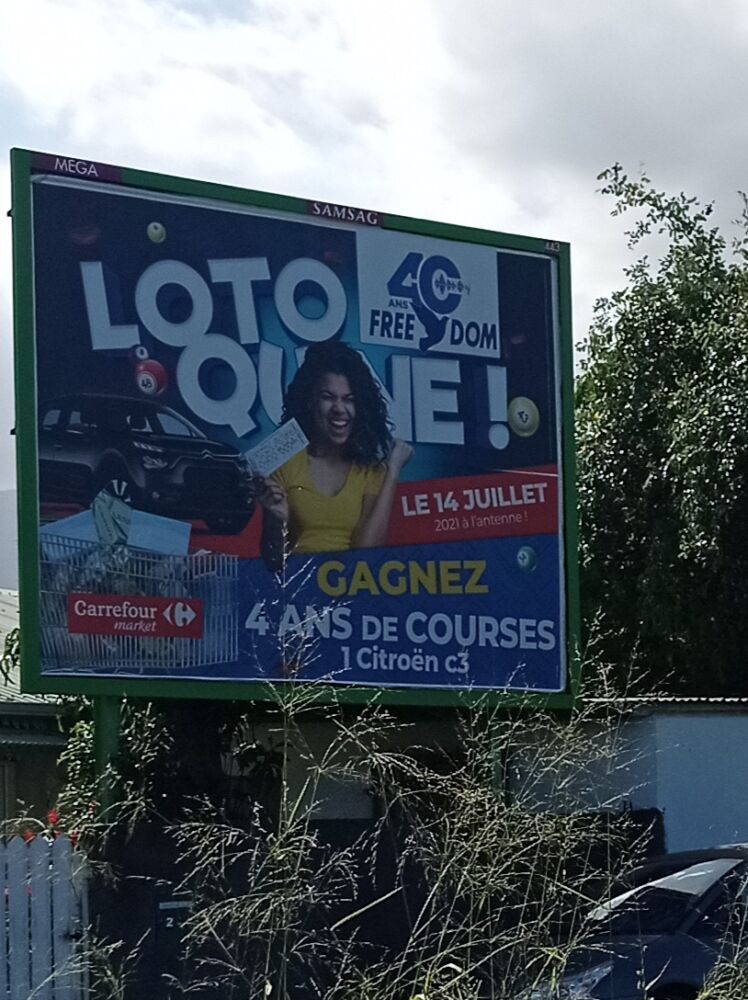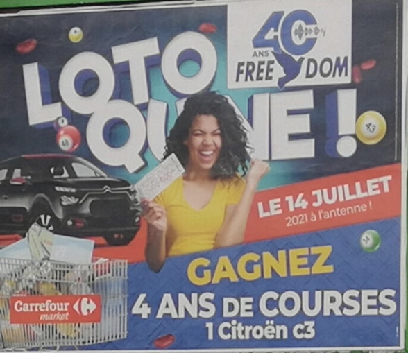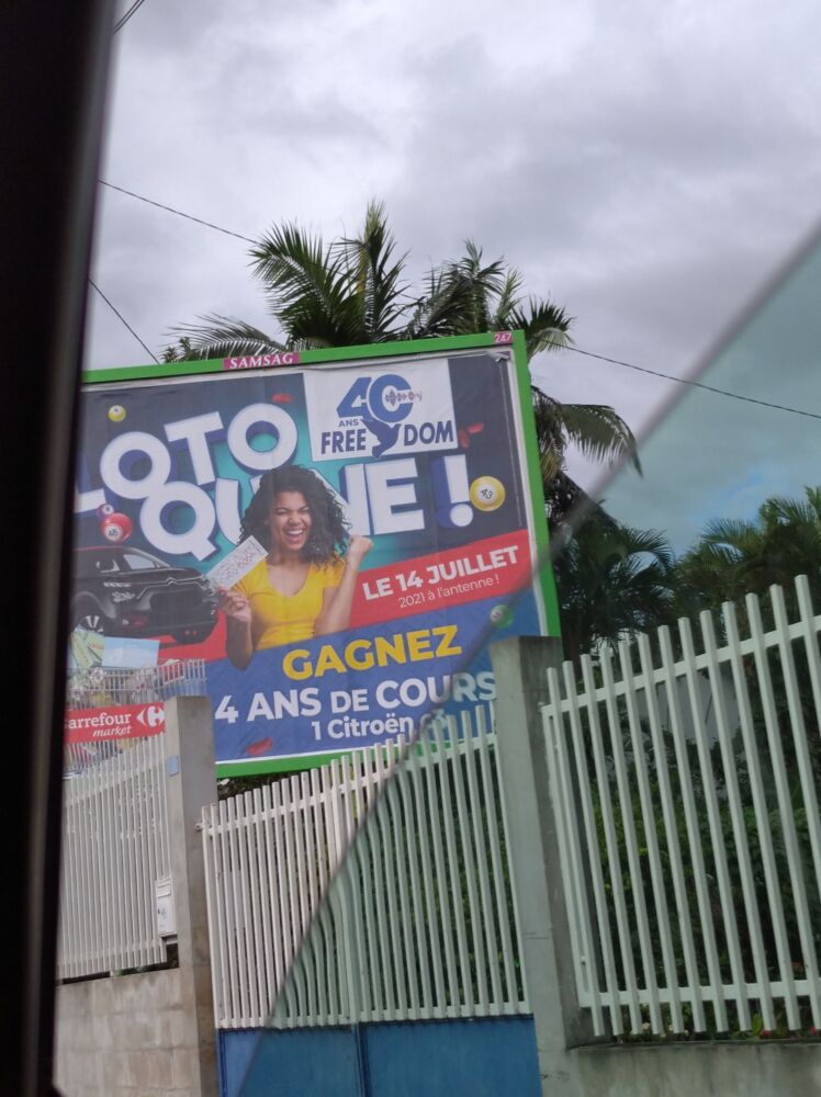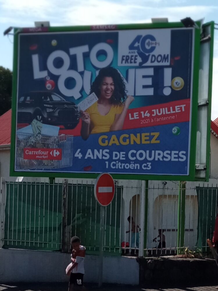 Photographiez les affiches 4×3 du Lotoquine des 40 ans de Free Dom qui fleurissent partout dans l’île et envoyez vos clichés avec la localisation de l’affiche et vos coordonnées postales à web@freedom.fr