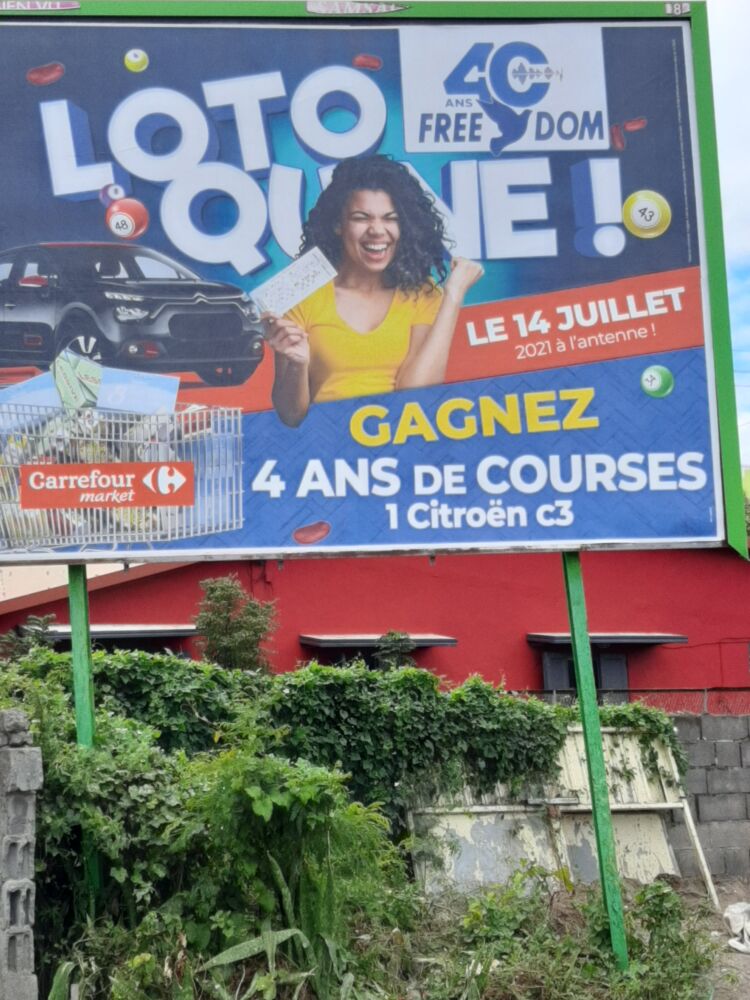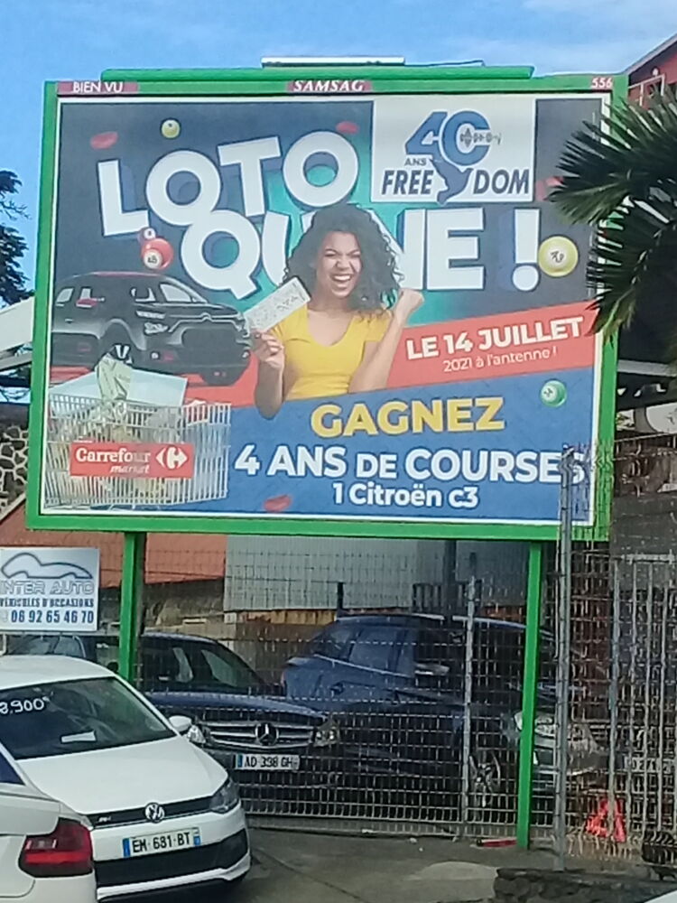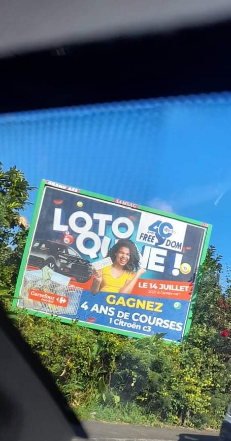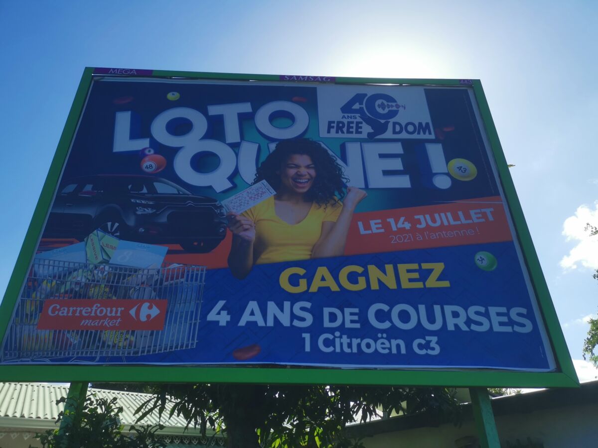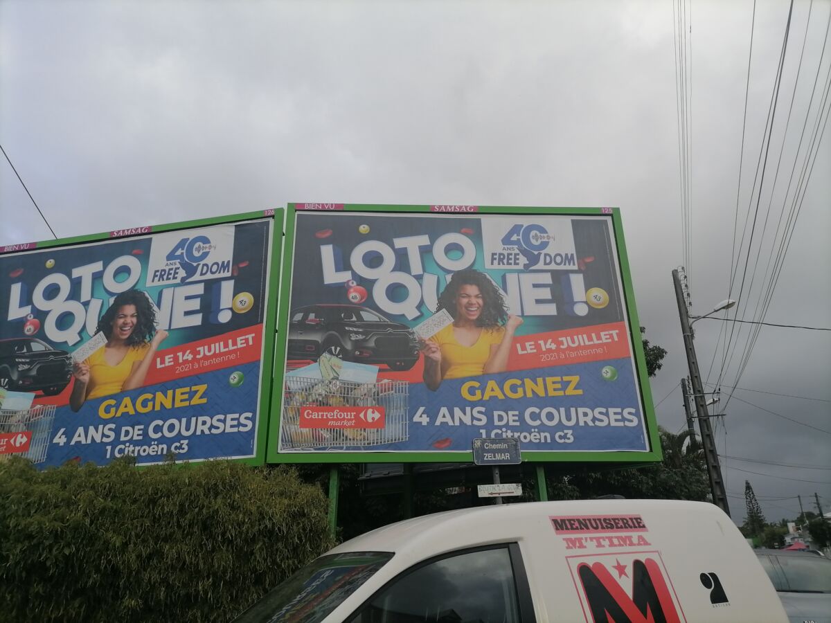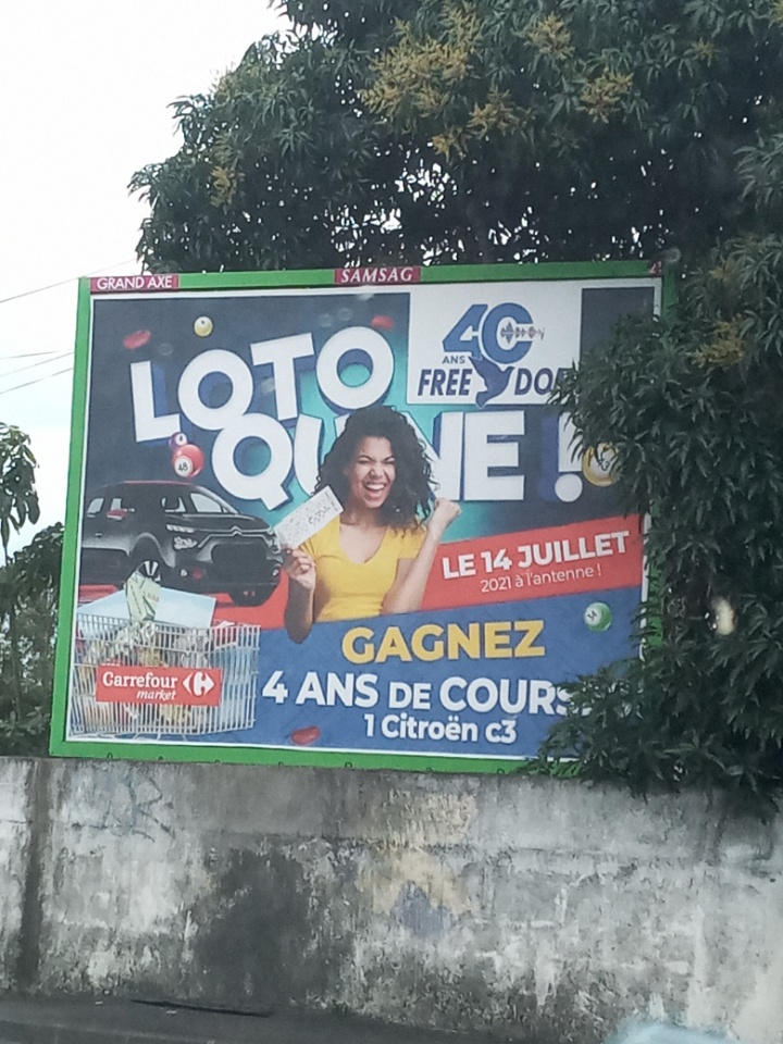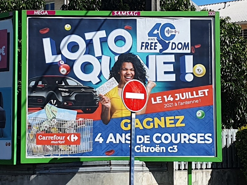 Photographiez les affiches 4×3 du Lotoquine des 40 ans de Free Dom qui fleurissent partout dans l’île et envoyez vos clichés avec la localisation de l’affiche et vos coordonnées postales à web@freedom.fr