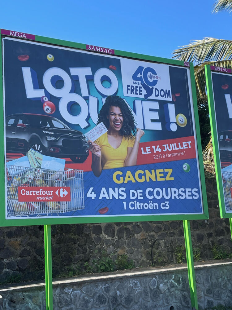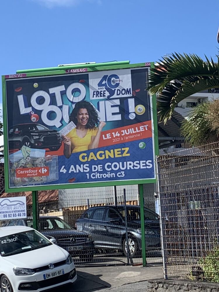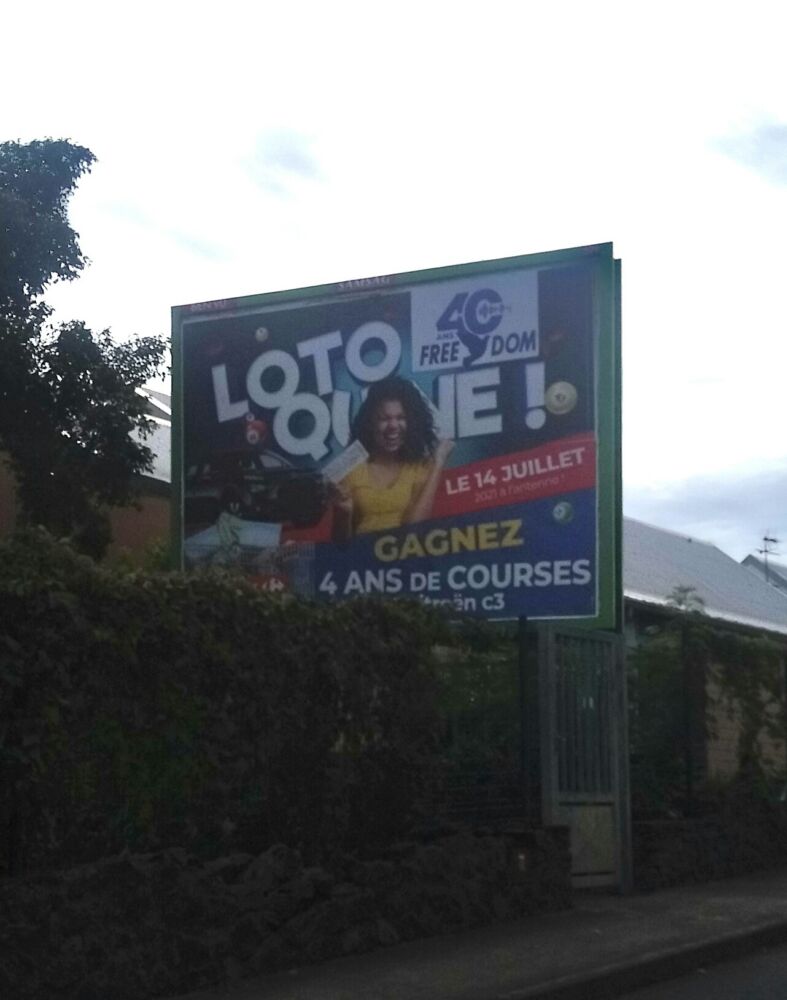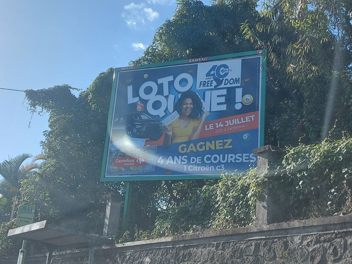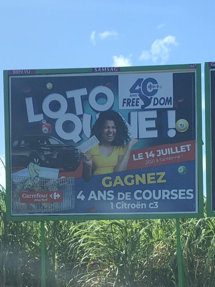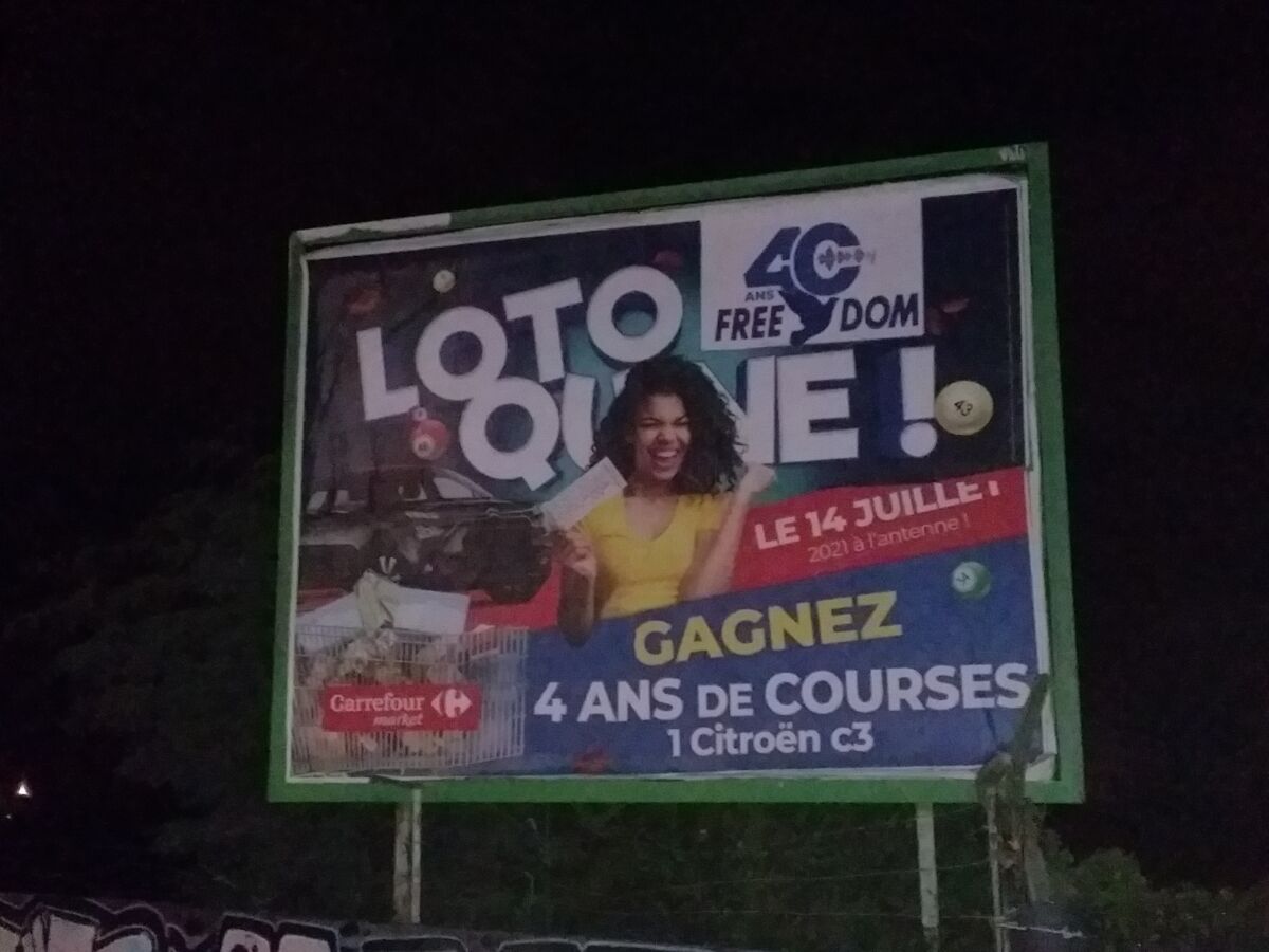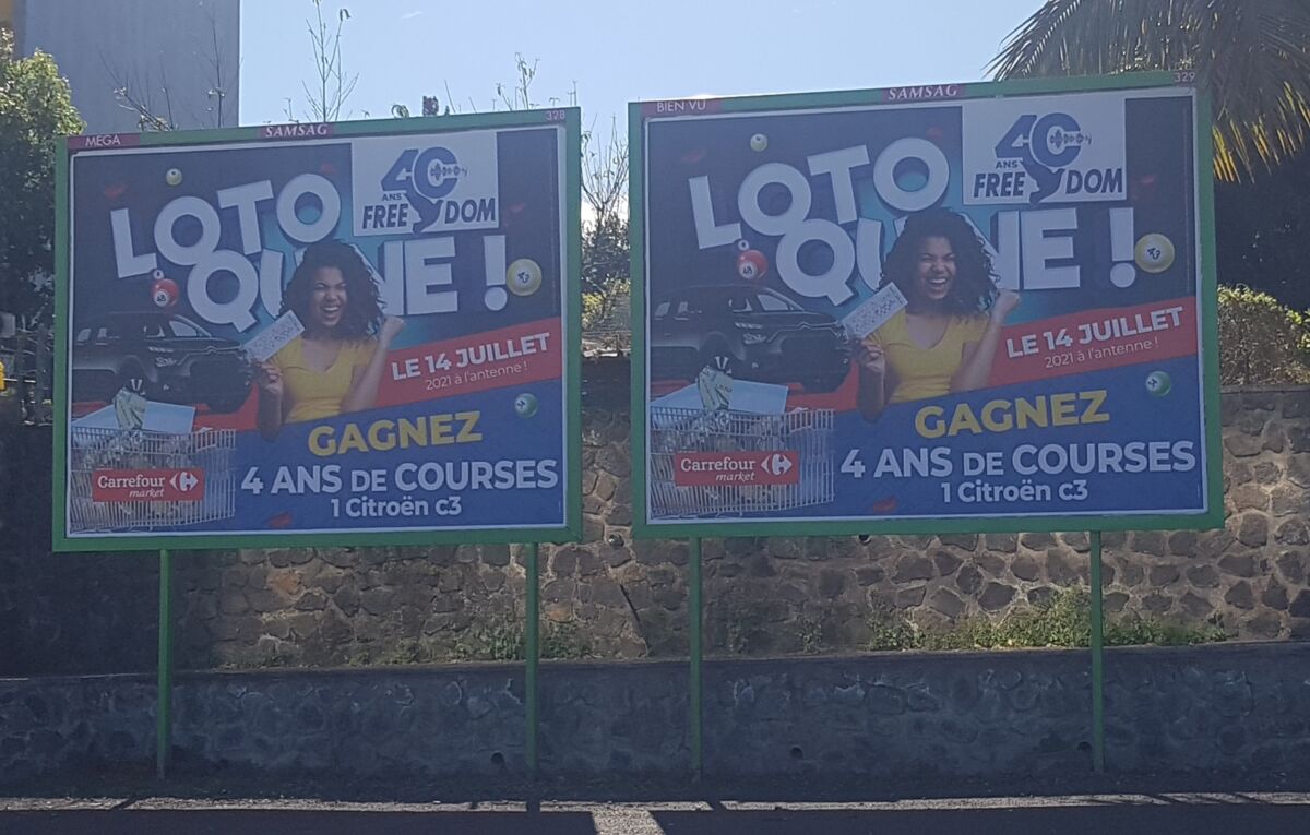 Photographiez les affiches 4×3 du Lotoquine des 40 ans de Free Dom qui fleurissent partout dans l’île et envoyez vos clichés avec la localisation de l’affiche et vos coordonnées postales à web@freedom.fr