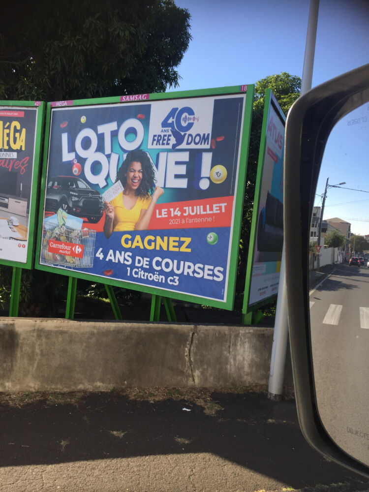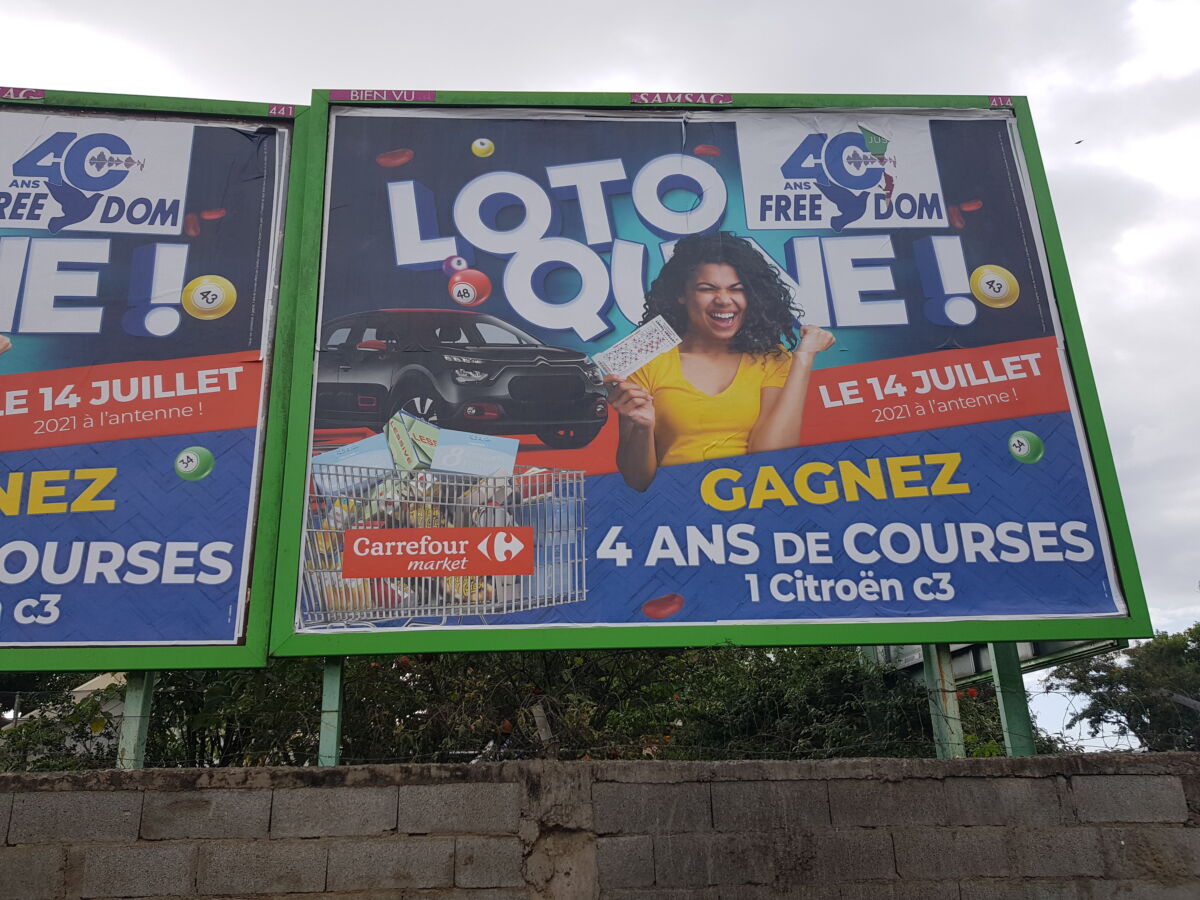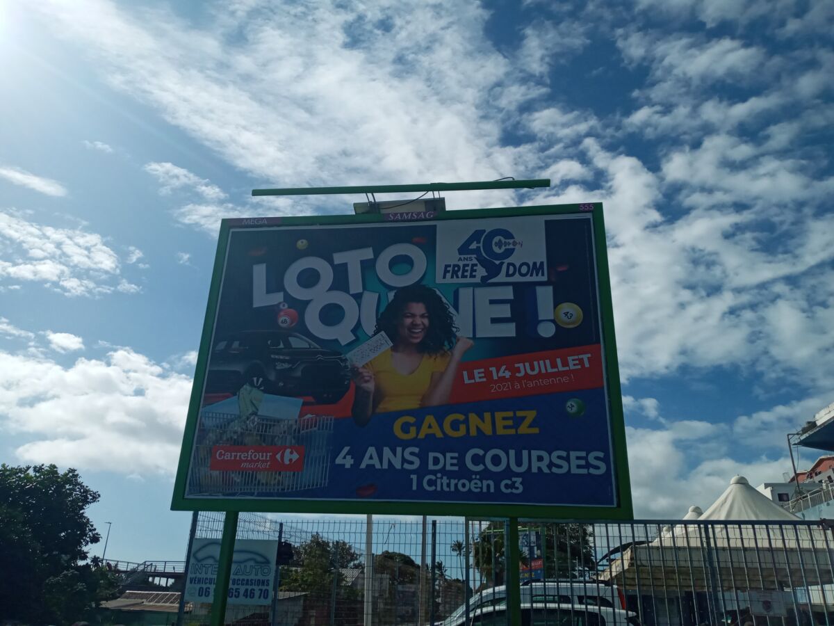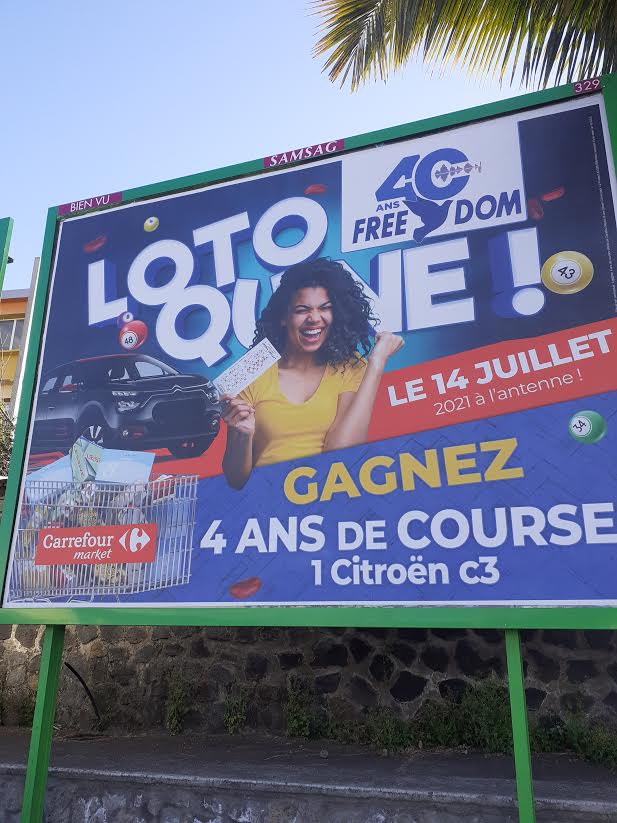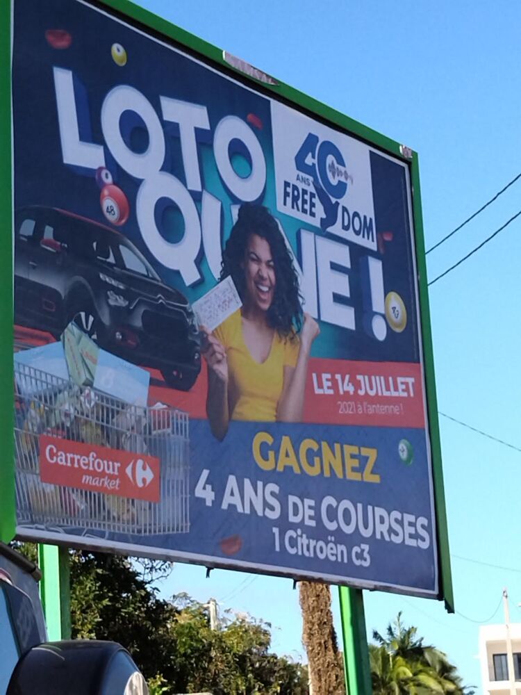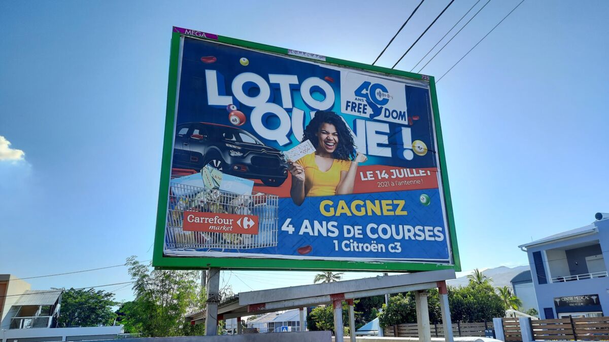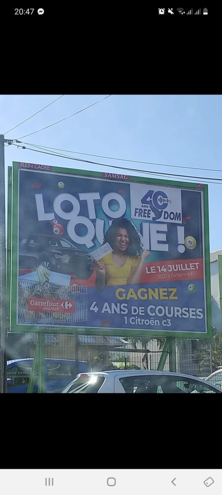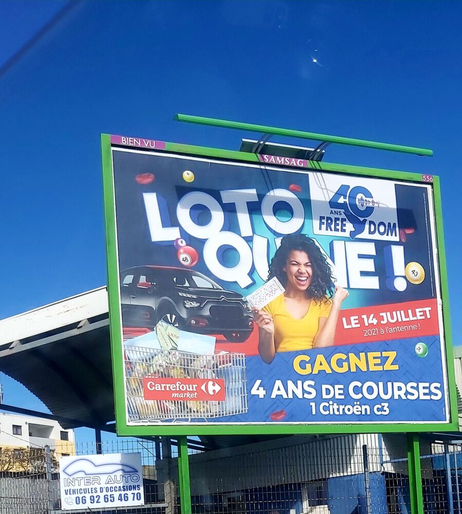Photographiez les affiches 4×3 du Lotoquine des 40 ans de Free Dom qui fleurissent partout dans l’île et envoyez vos clichés avec la localisation de l’affiche et vos coordonnées postales à web@freedom.fr