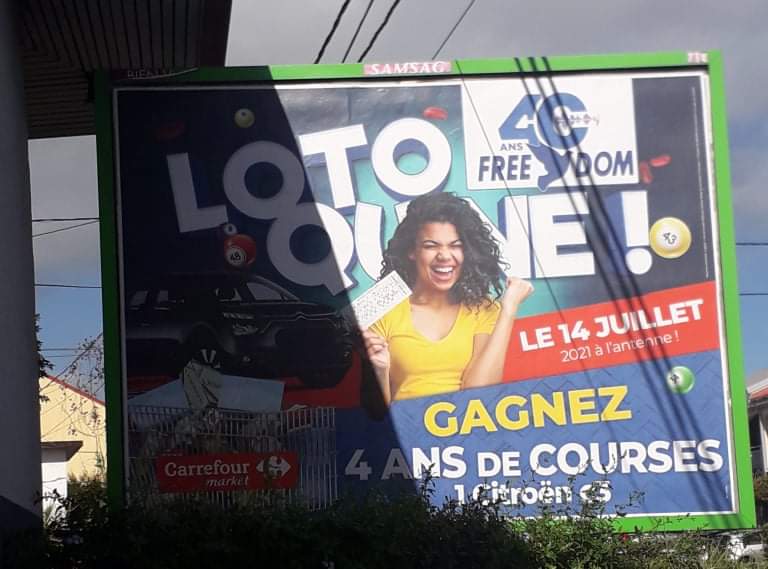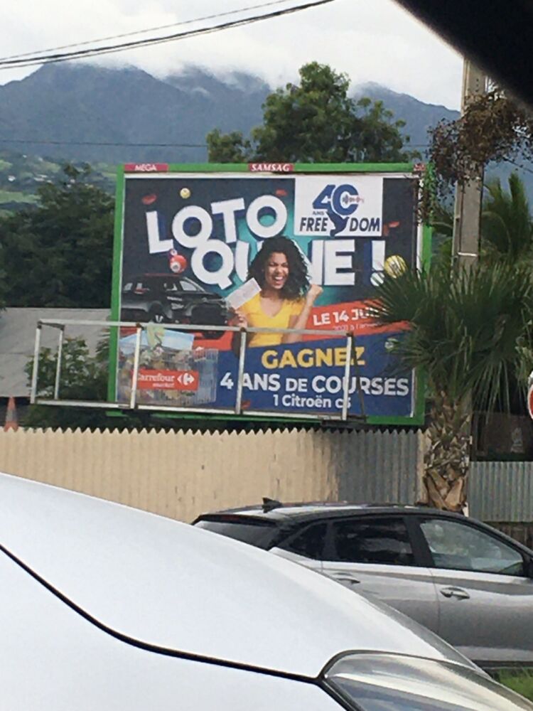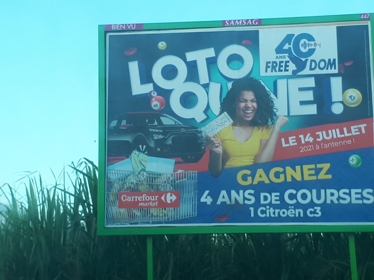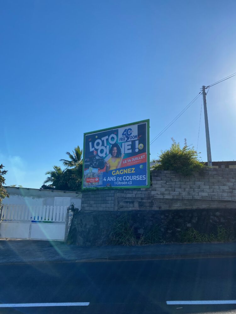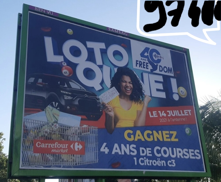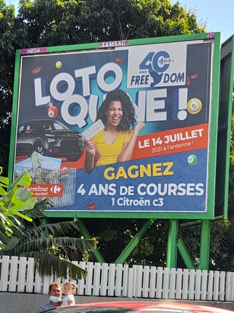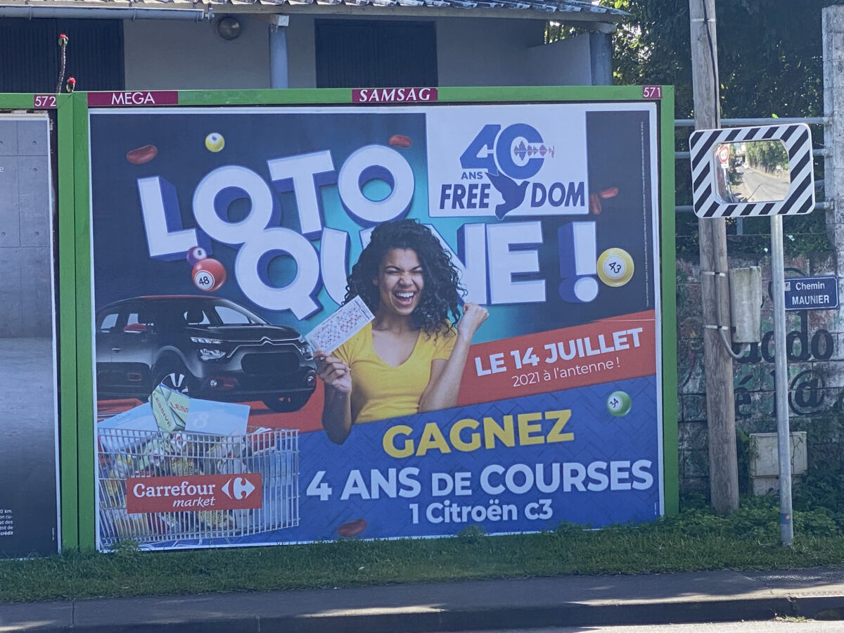 Photographiez les affiches 4×3 du Lotoquine des 40 ans de Free Dom qui fleurissent partout dans l’île et envoyez vos clichés avec la localisation de l’affiche et vos coordonnées postales à web@freedom.fr