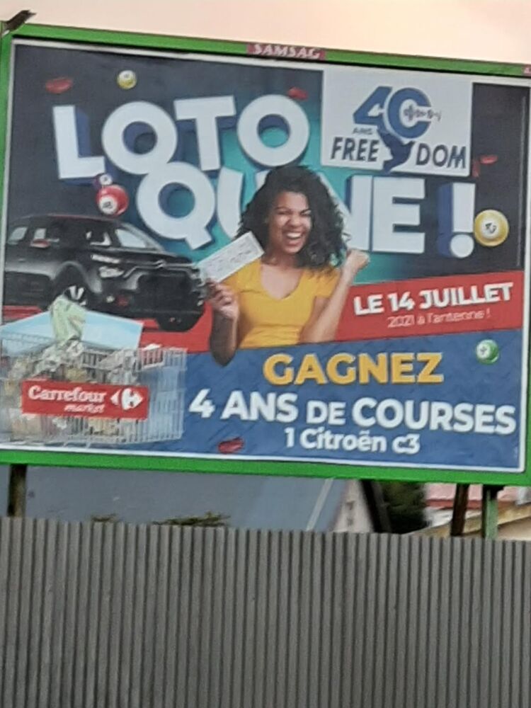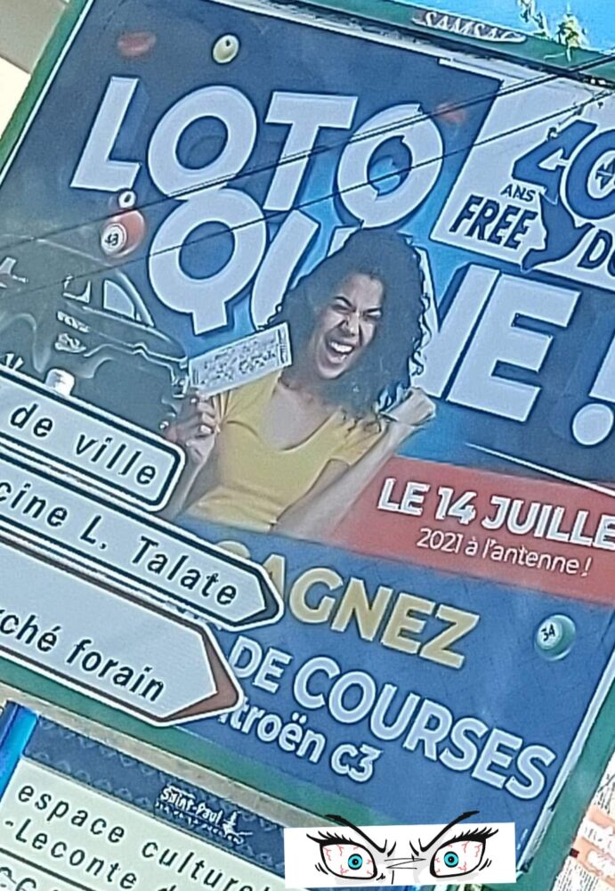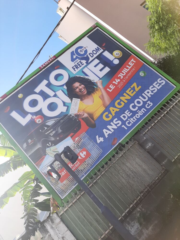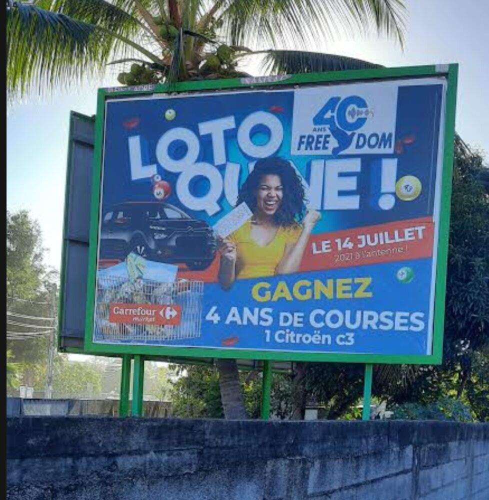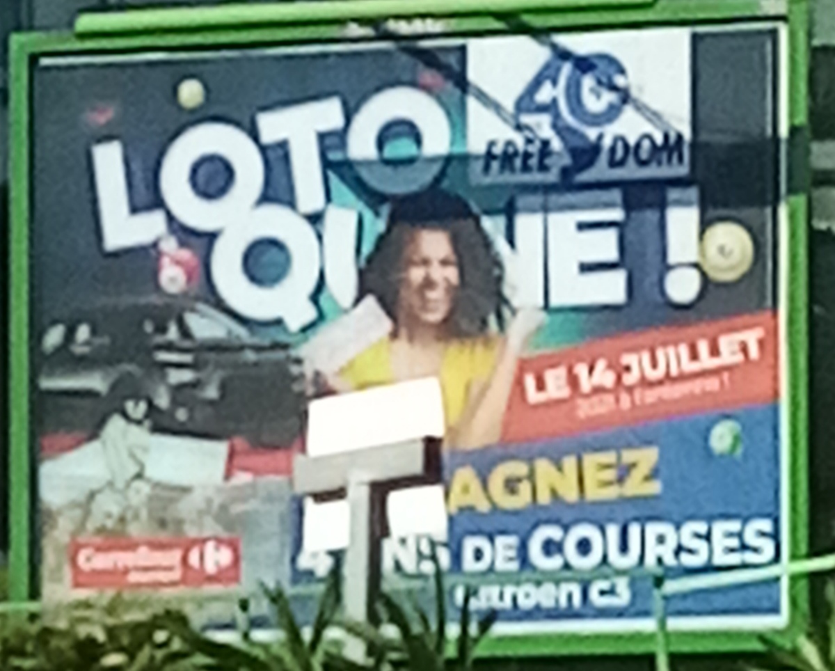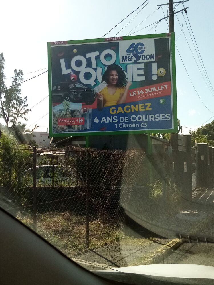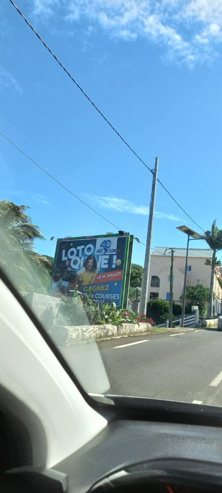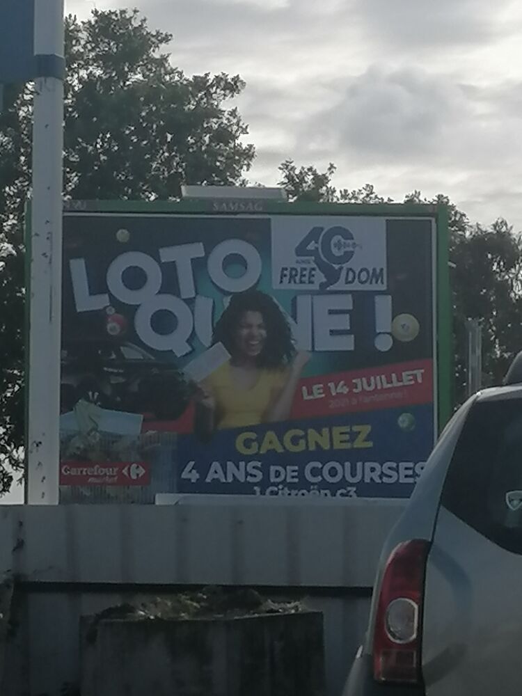 Photographiez les affiches 4×3 du Lotoquine des 40 ans de Free Dom qui fleurissent partout dans l’île et envoyez vos clichés avec la localisation de l’affiche et vos coordonnées postales à web@freedom.fr