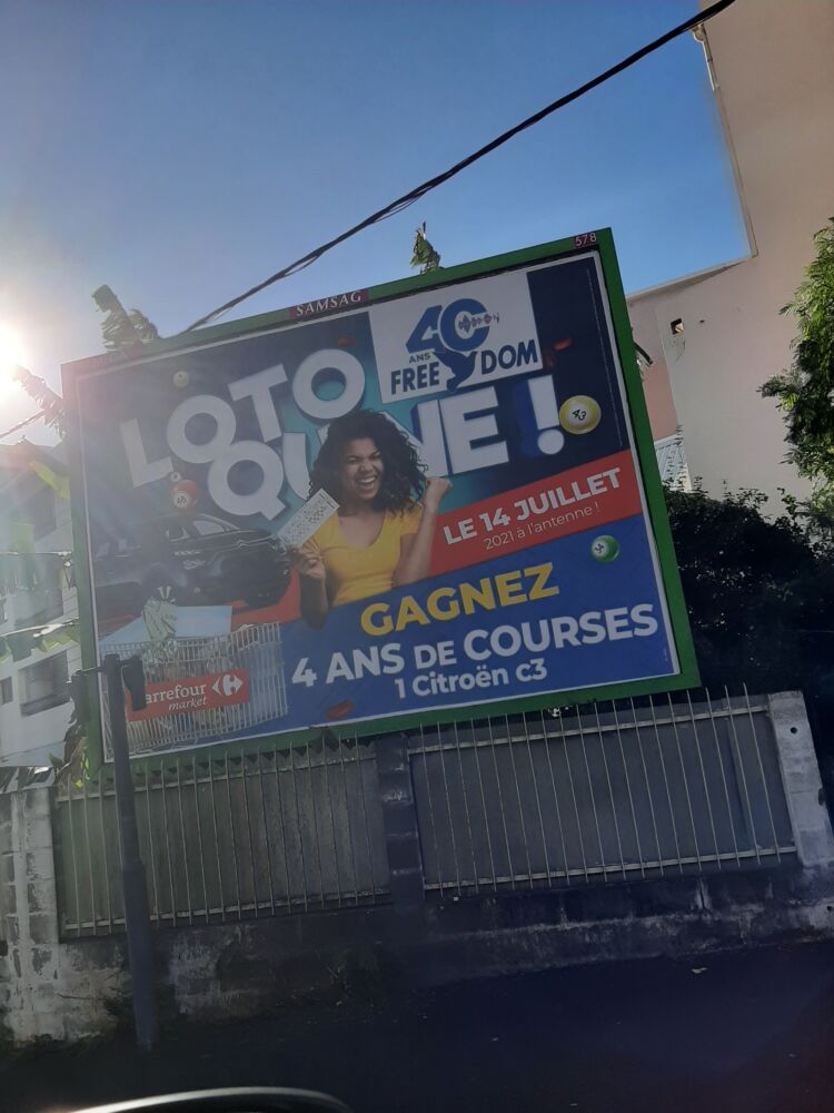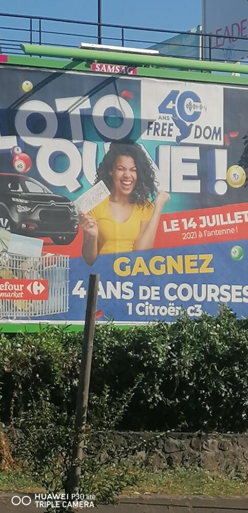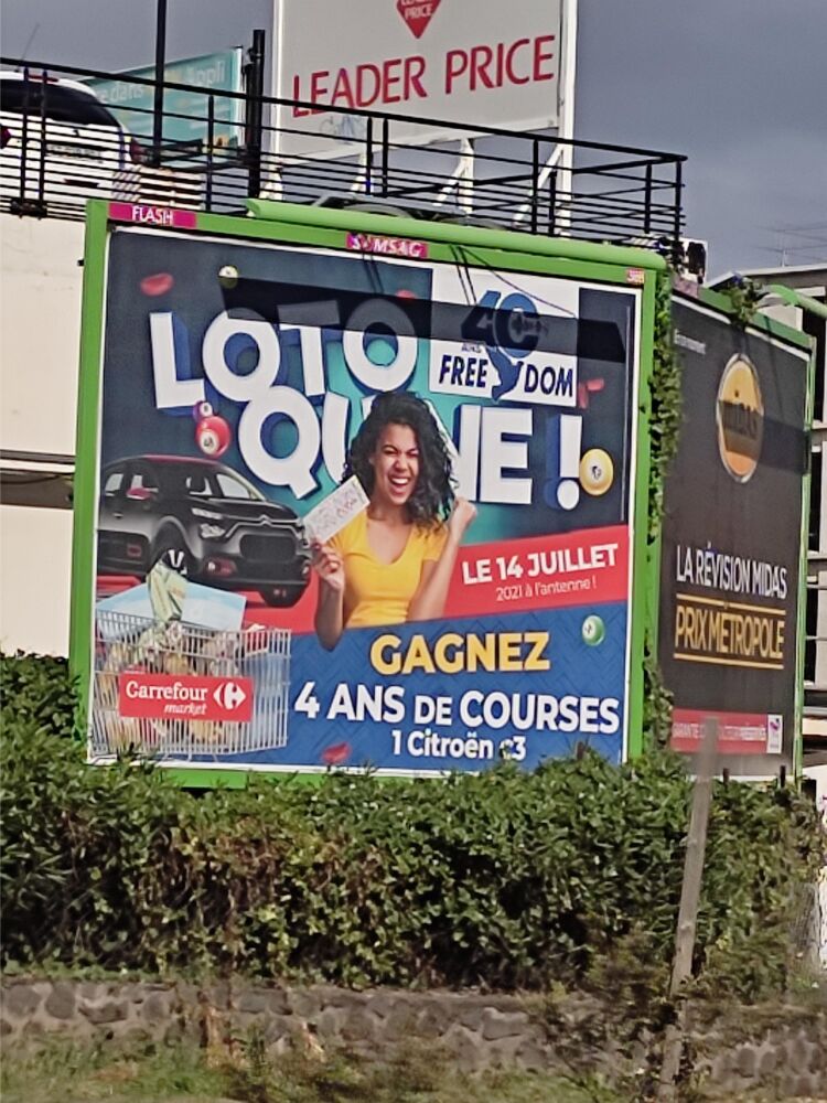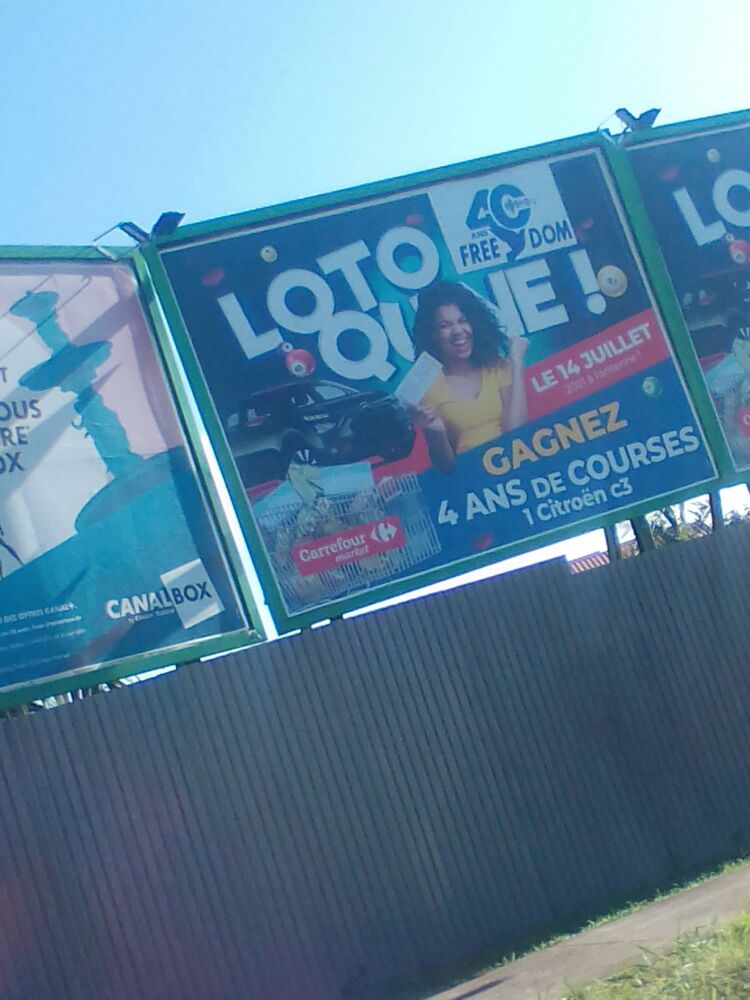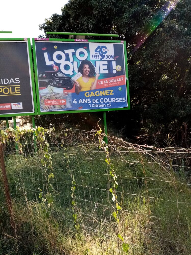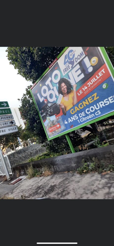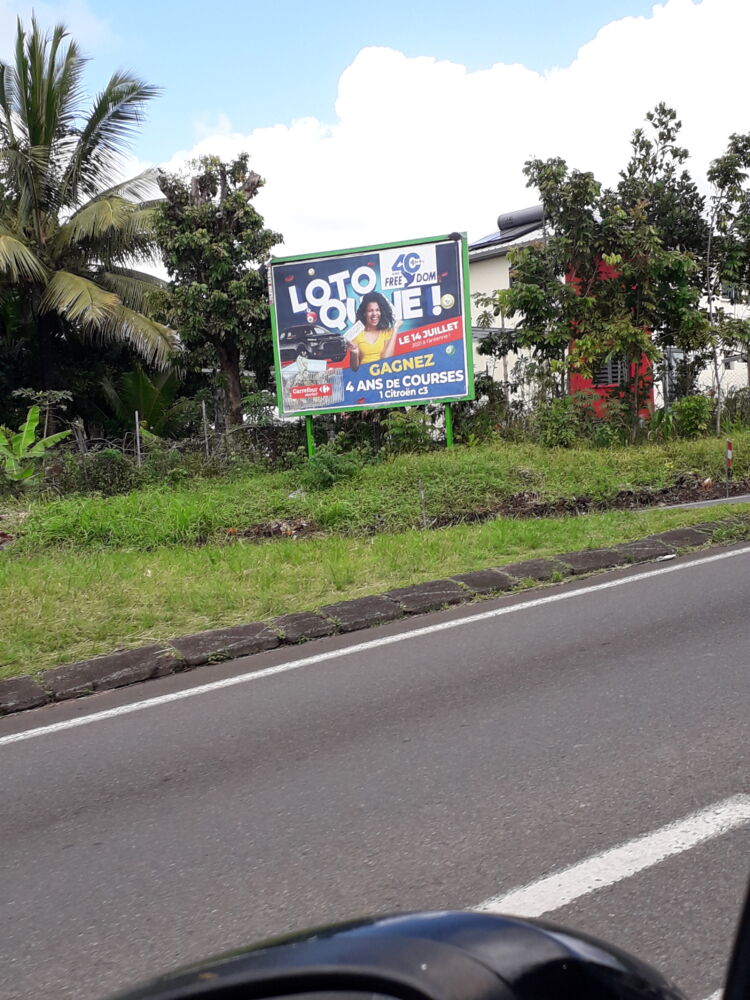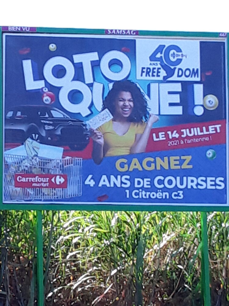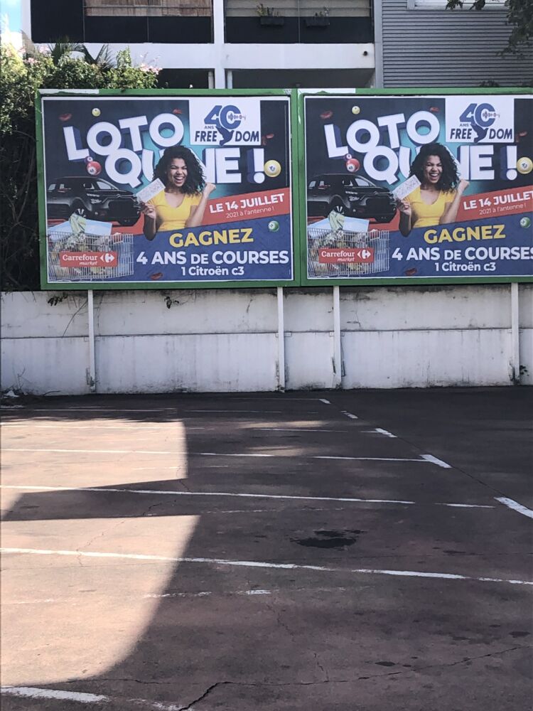 Photographiez les affiches 4×3 du Lotoquine des 40 ans de Free Dom qui fleurissent partout dans l’île et envoyez vos clichés avec la localisation de l’affiche et vos coordonnées postales à web@freedom.fr