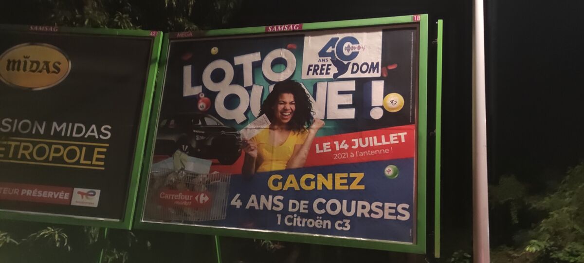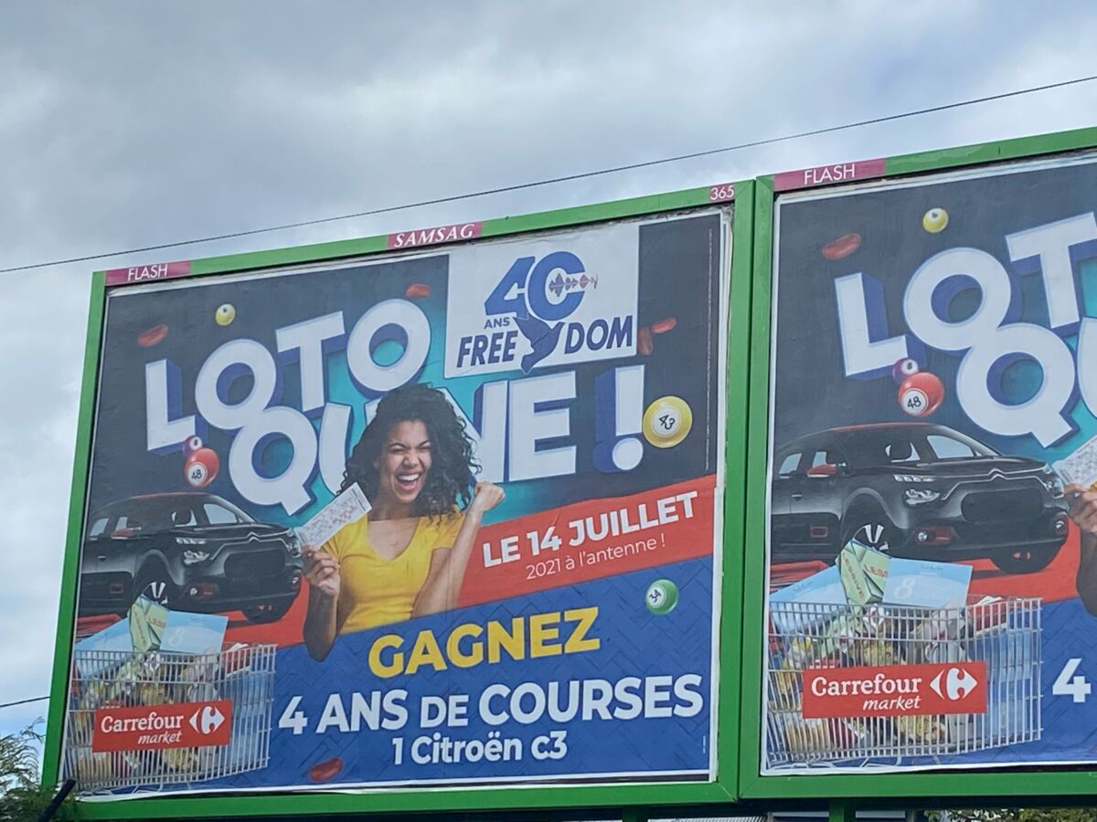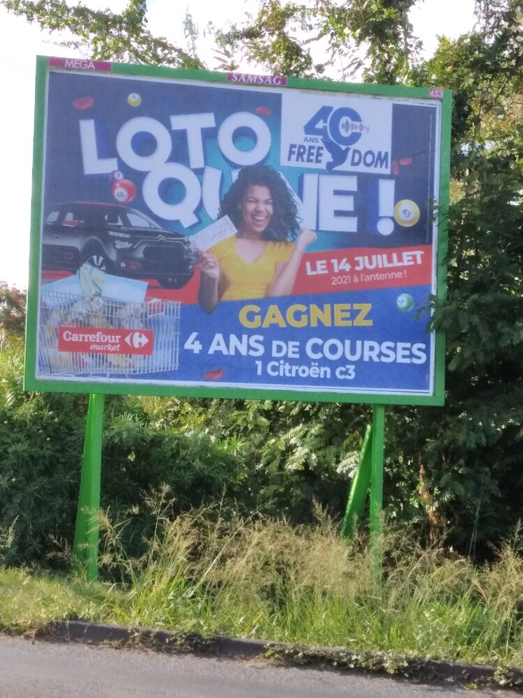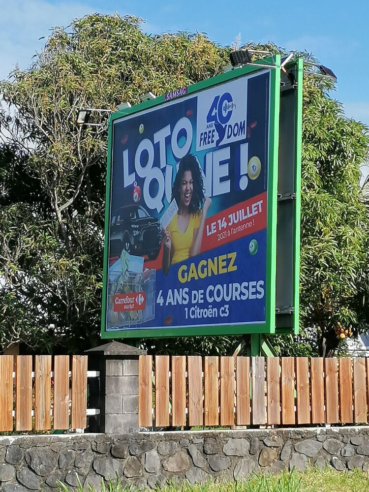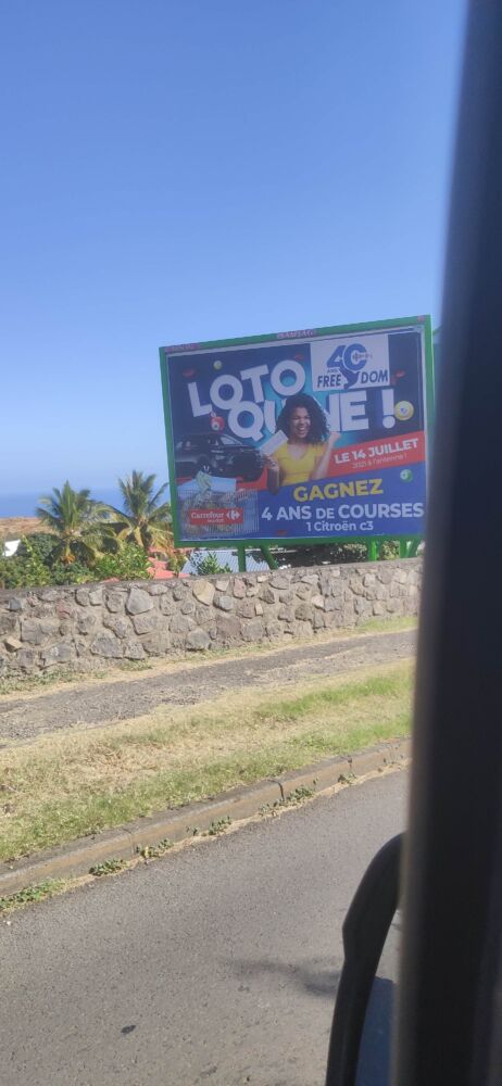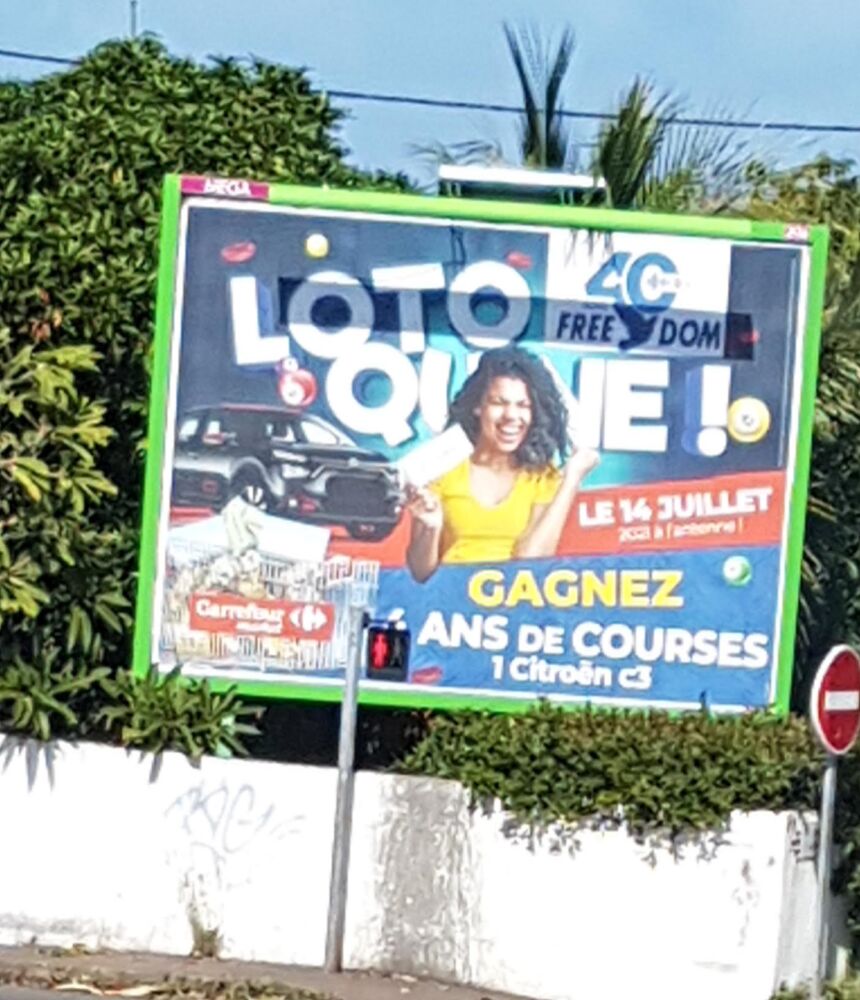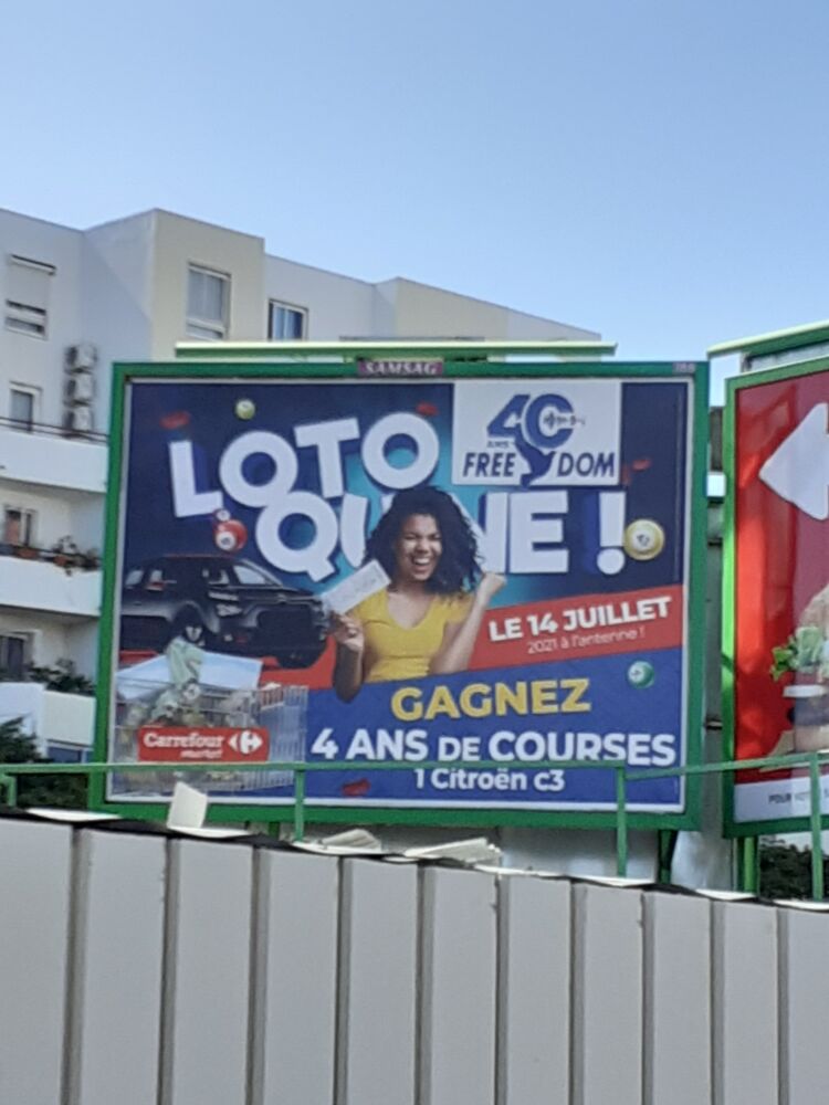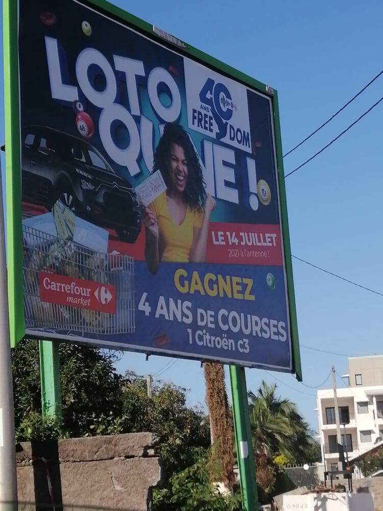 Photographiez les affiches 4×3 du Lotoquine des 40 ans de Free Dom qui fleurissent partout dans l’île et envoyez vos clichés avec la localisation de l’affiche et vos coordonnées postales à web@freedom.fr