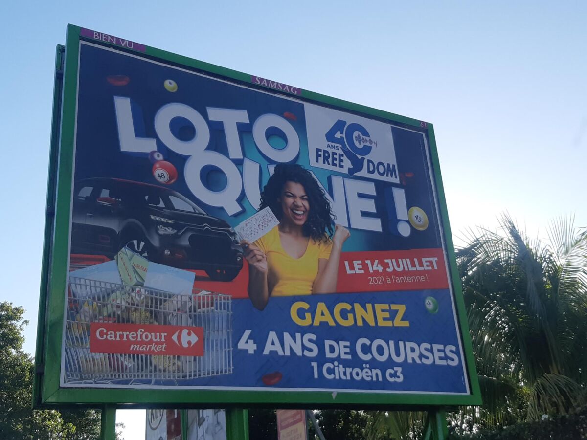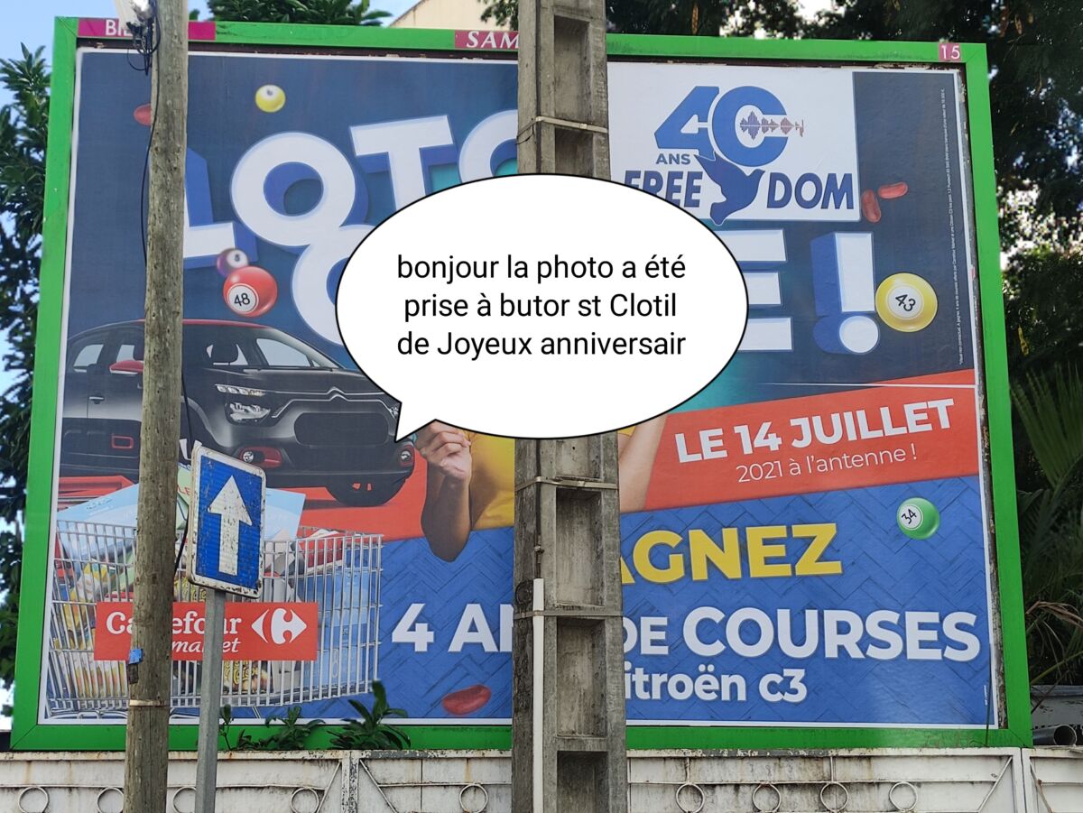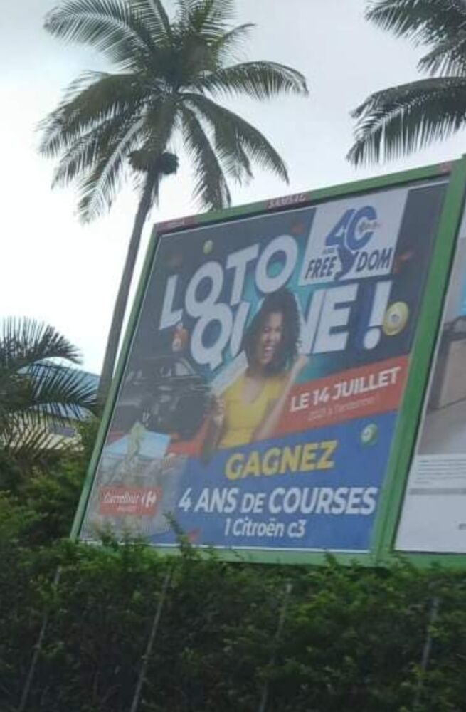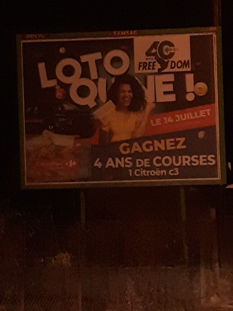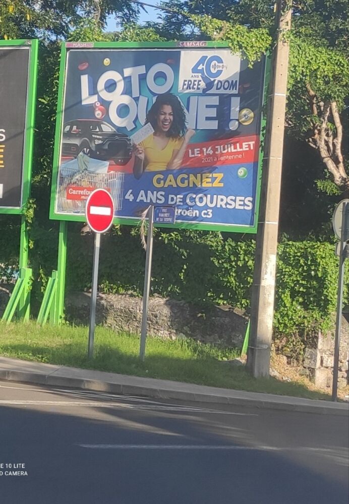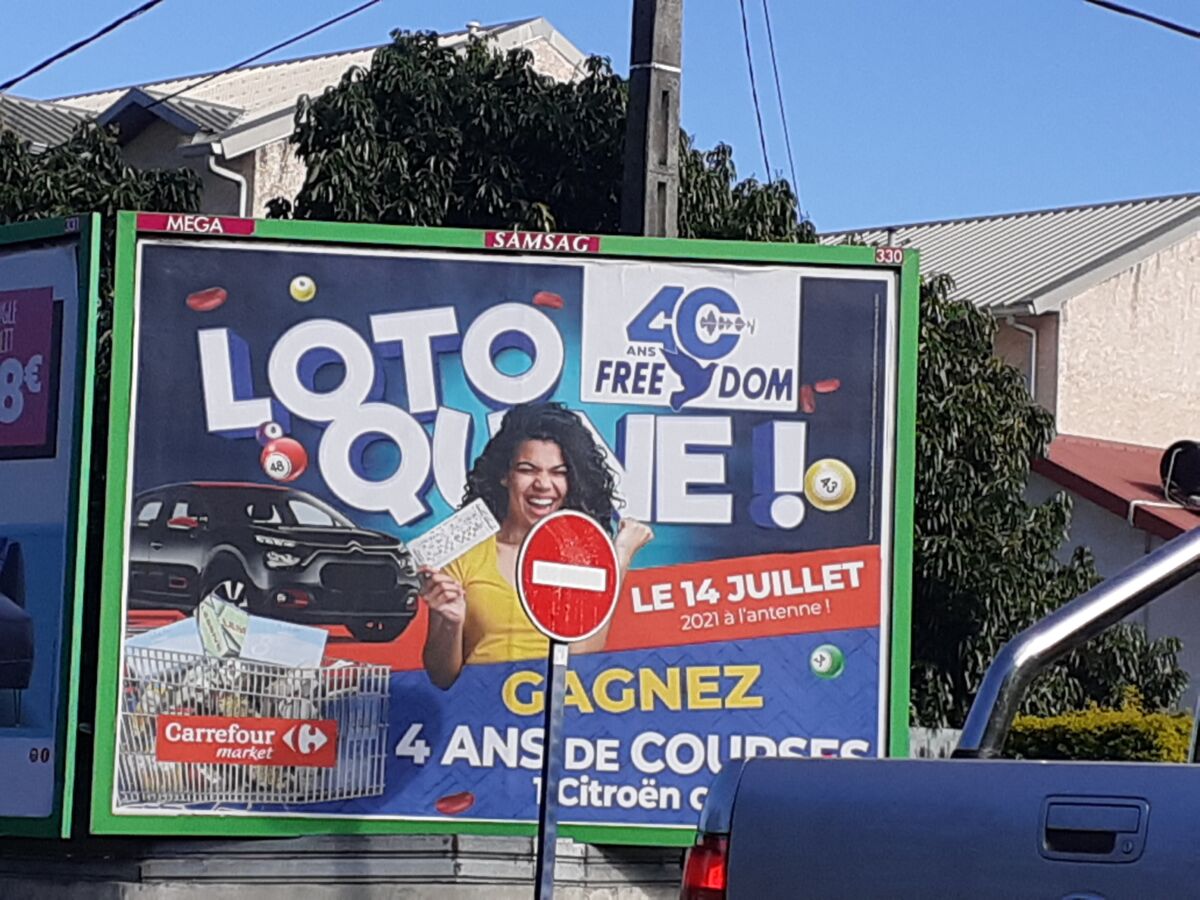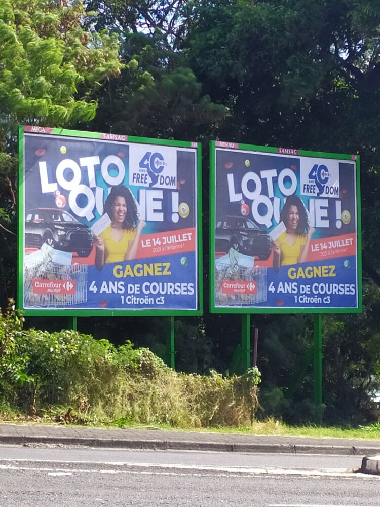 Photographiez les affiches 4×3 du Lotoquine des 40 ans de Free Dom qui fleurissent partout dans l’île et envoyez vos clichés avec la localisation de l’affiche et vos coordonnées postales à web@freedom.fr