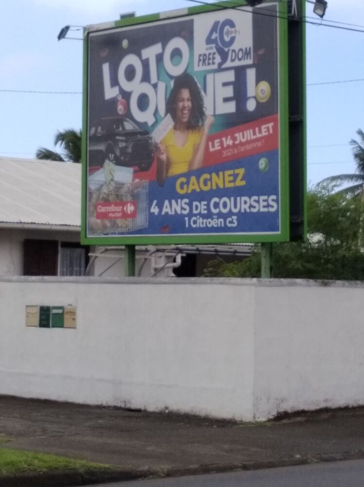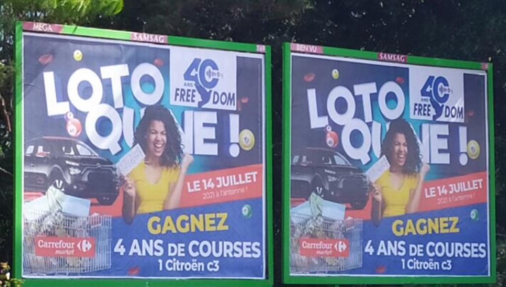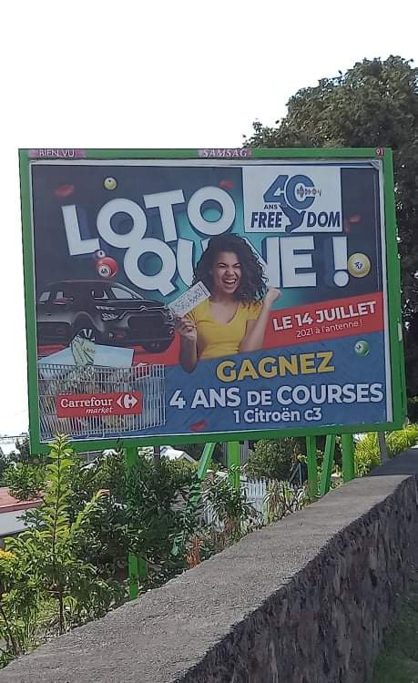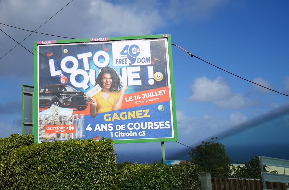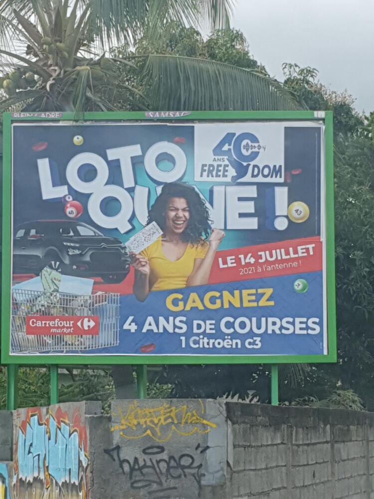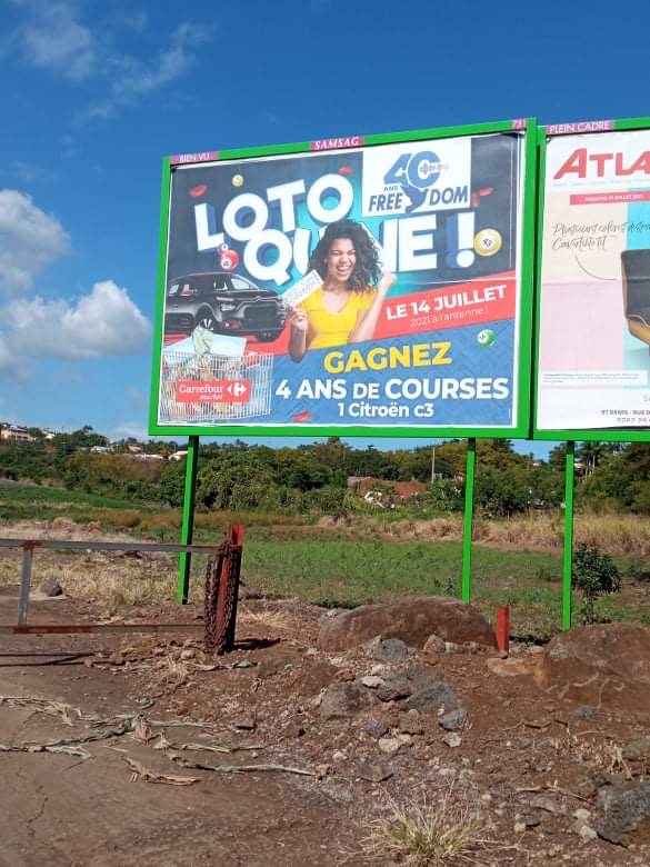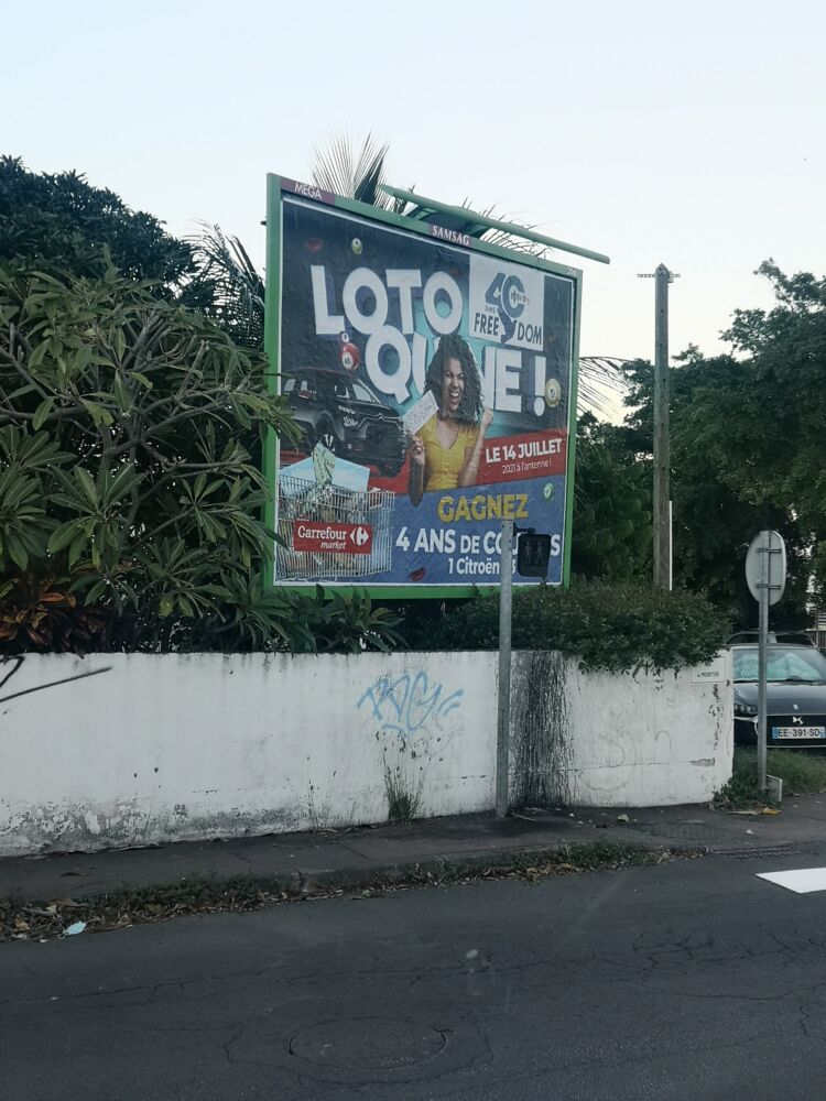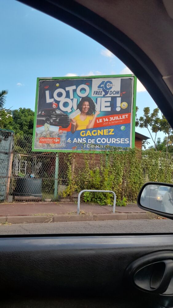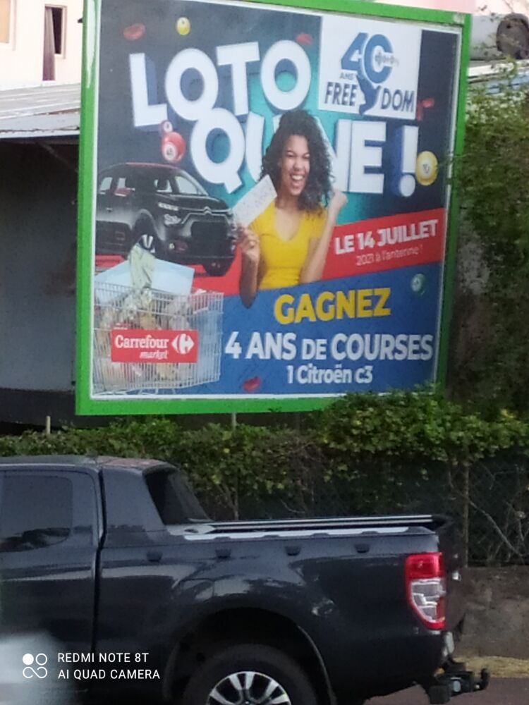 Photographiez les affiches 4×3 du Lotoquine des 40 ans de Free Dom qui fleurissent partout dans l’île et envoyez vos clichés avec la localisation de l’affiche et vos coordonnées postales à web@freedom.fr