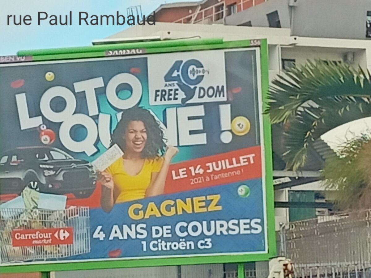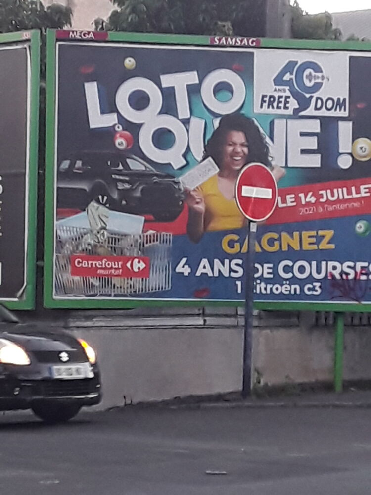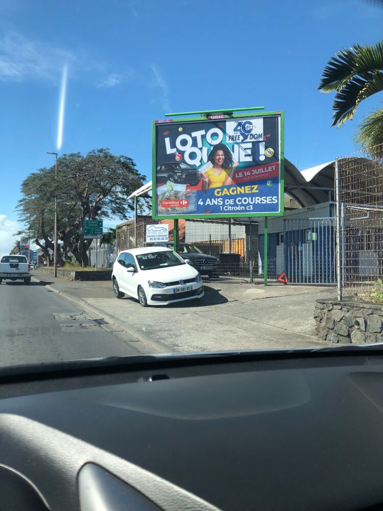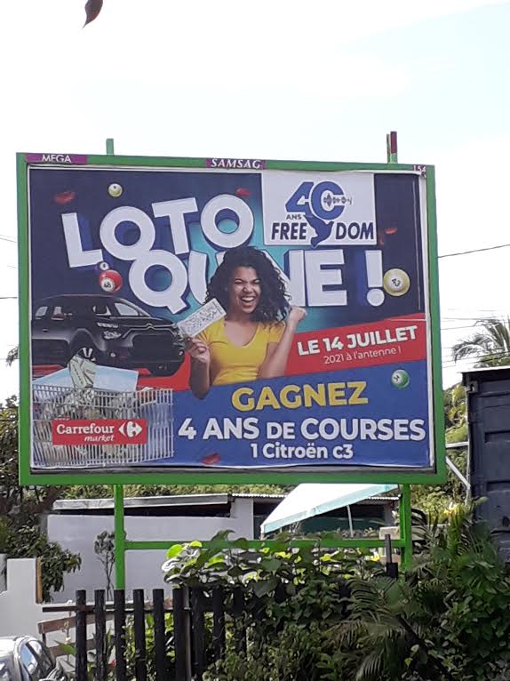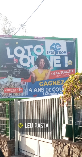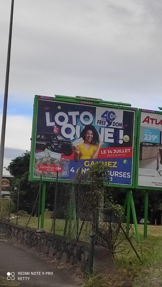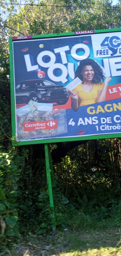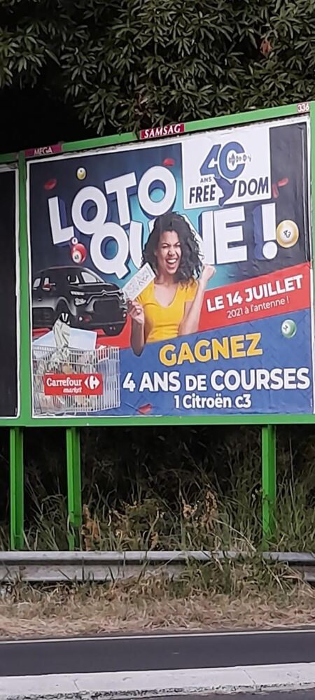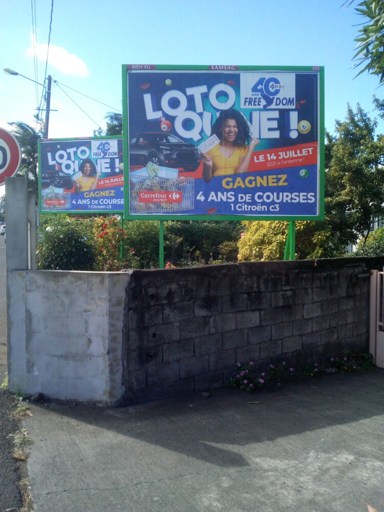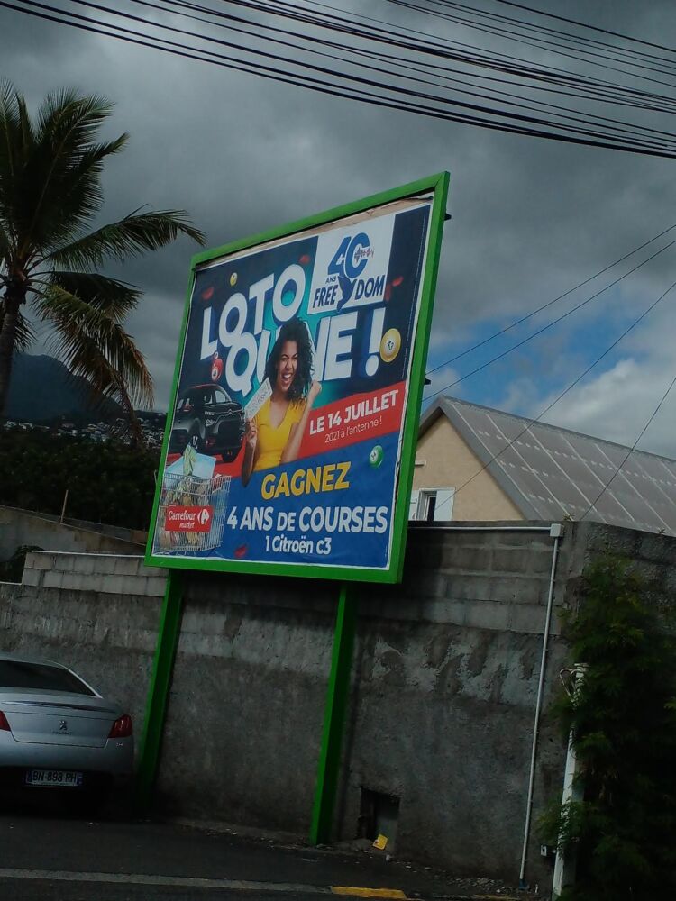 Photographiez les affiches 4×3 du Lotoquine des 40 ans de Free Dom qui fleurissent partout dans l’île et envoyez vos clichés avec la localisation de l’affiche et vos coordonnées postales à web@freedom.fr