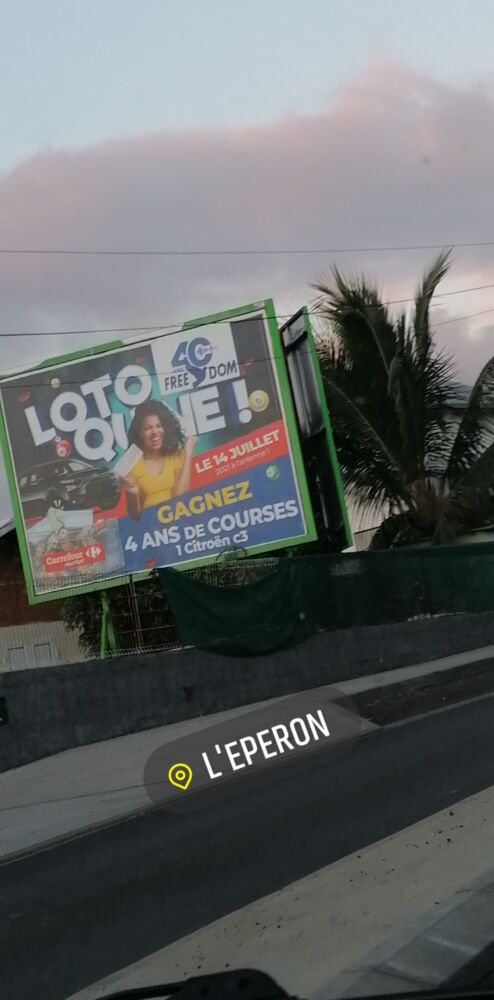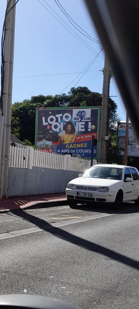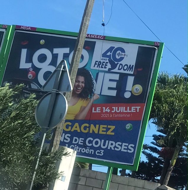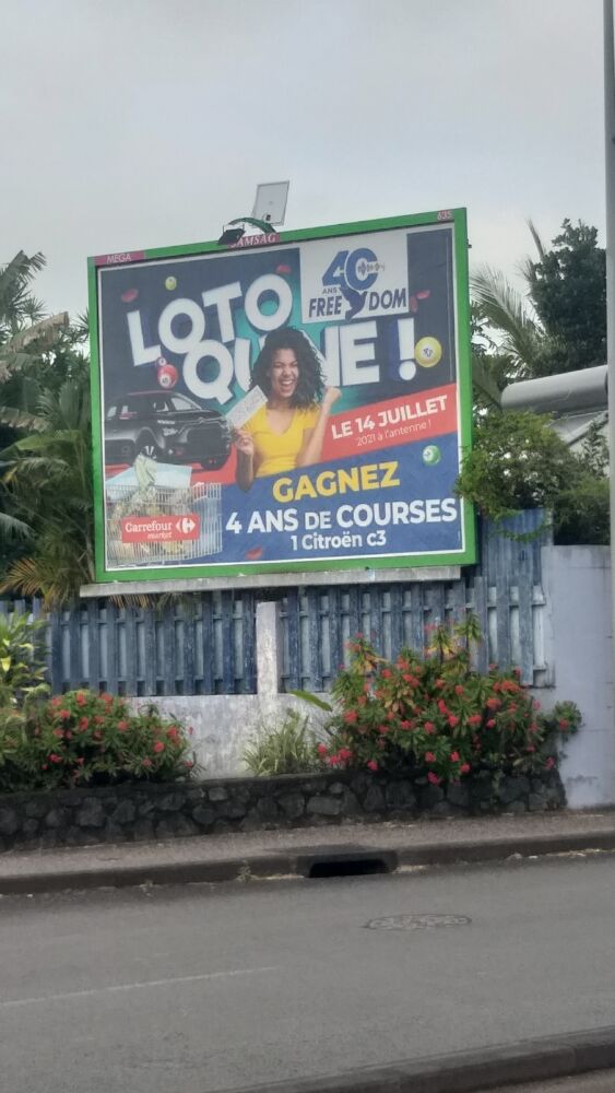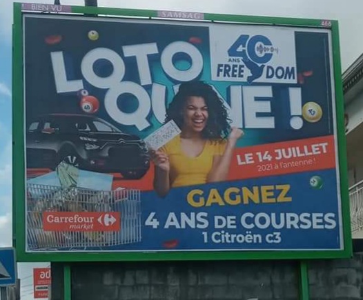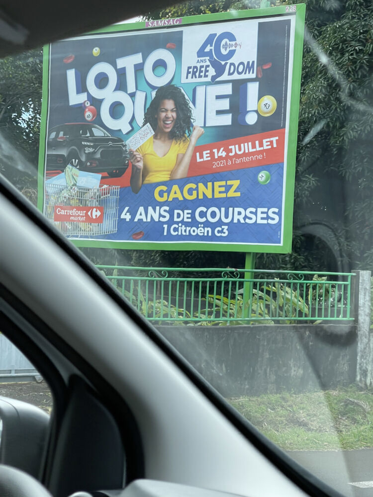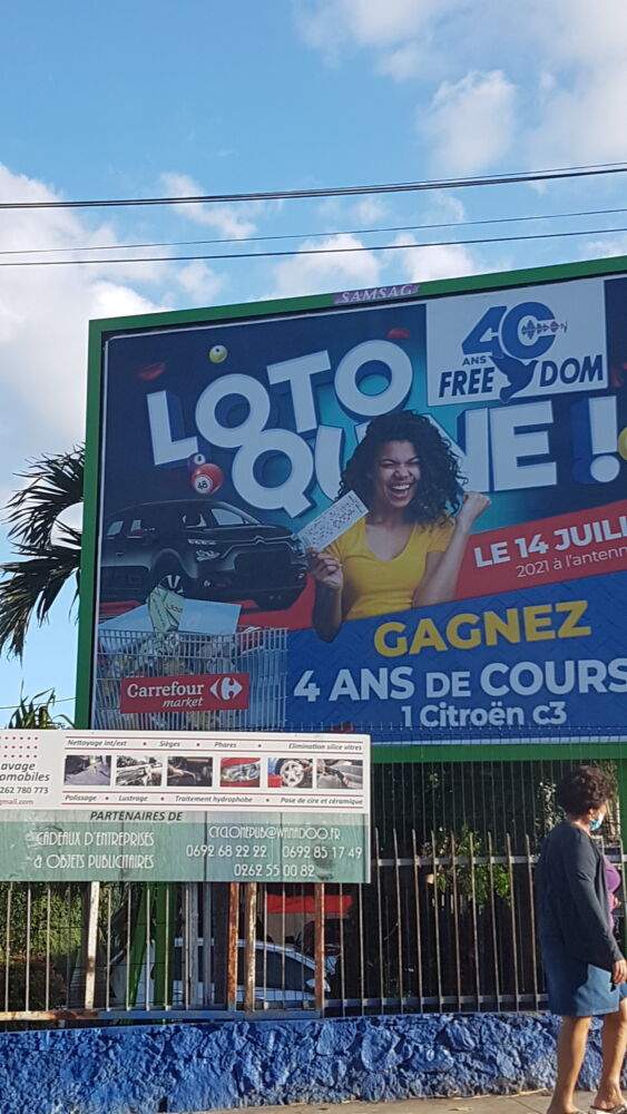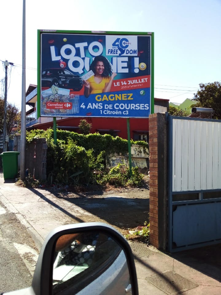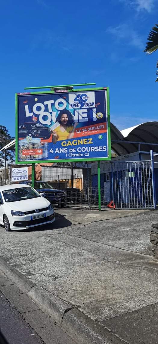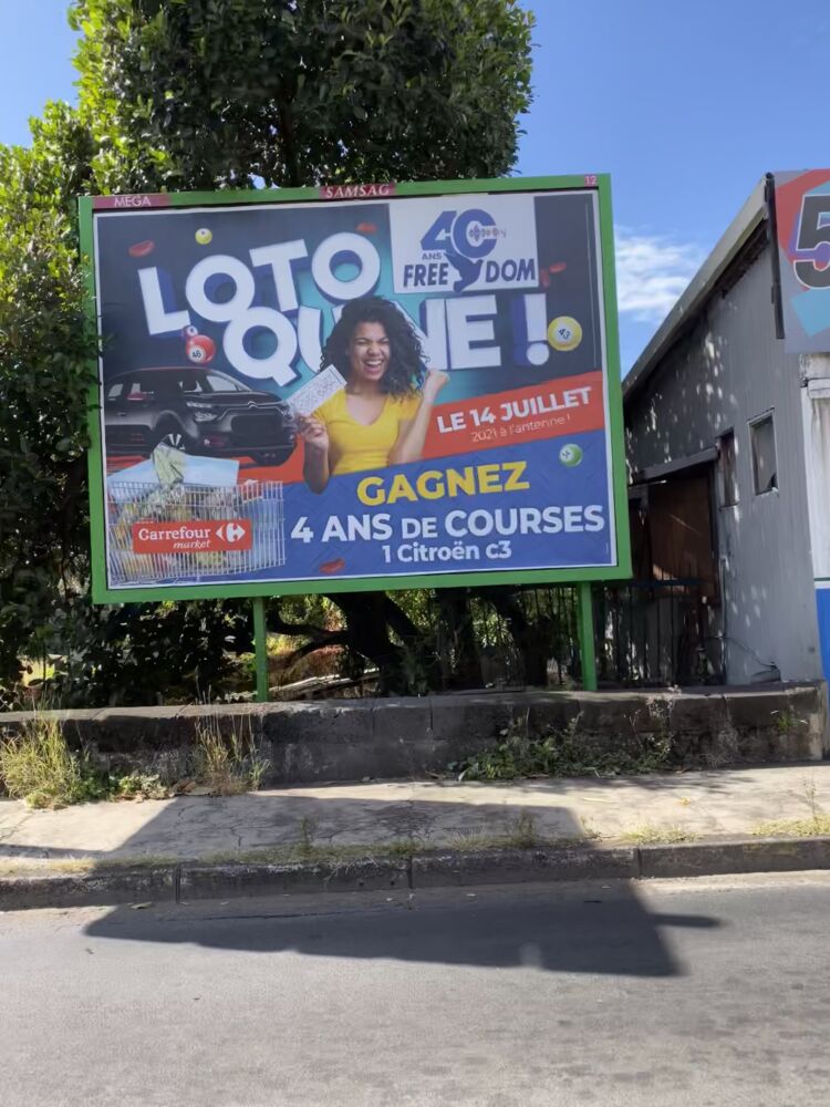 Photographiez les affiches 4×3 du Lotoquine des 40 ans de Free Dom qui fleurissent partout dans l’île et envoyez vos clichés avec la localisation de l’affiche et vos coordonnées postales à web@freedom.fr