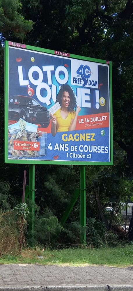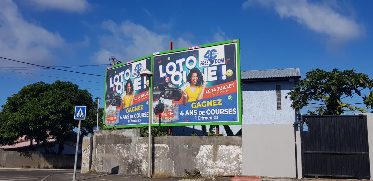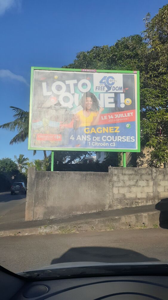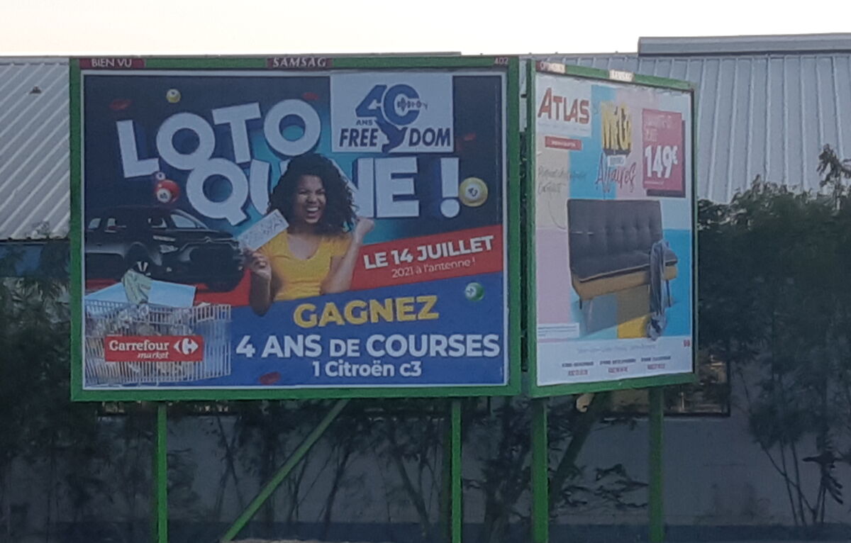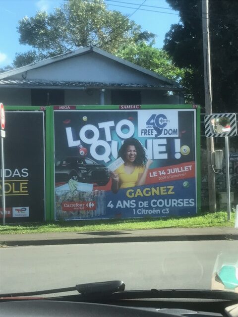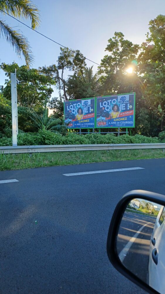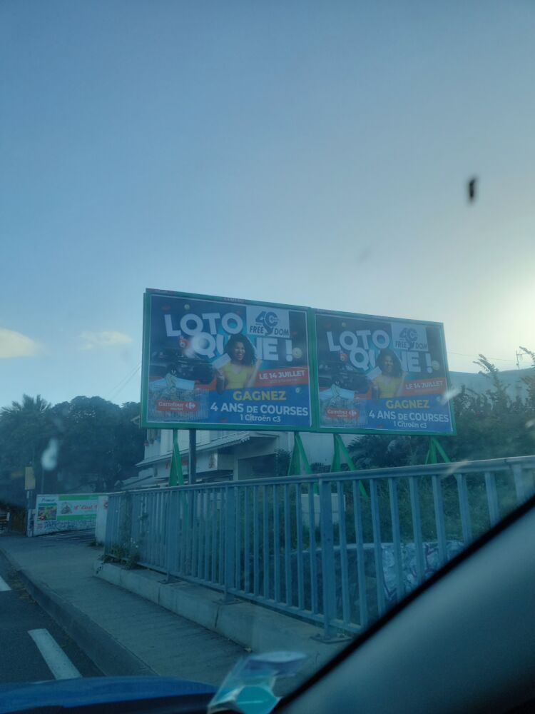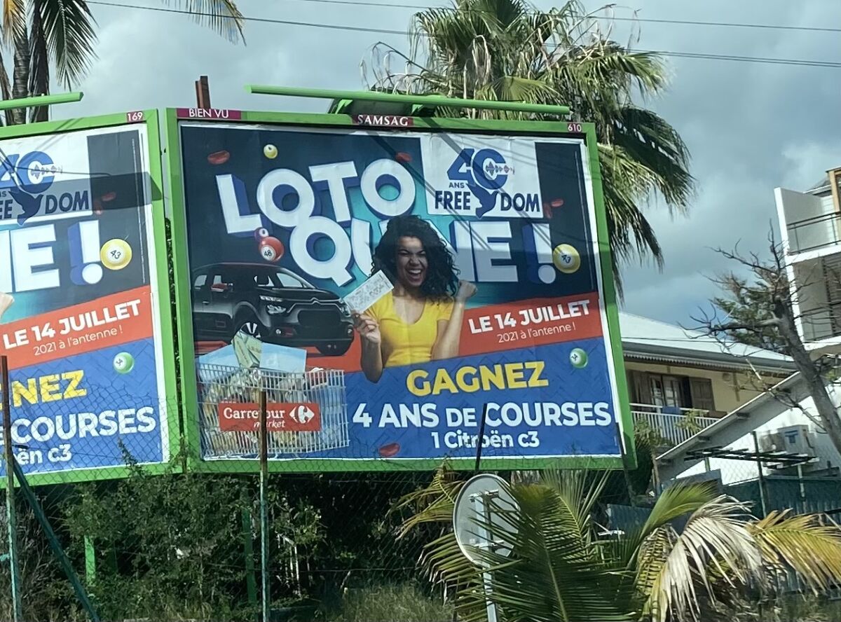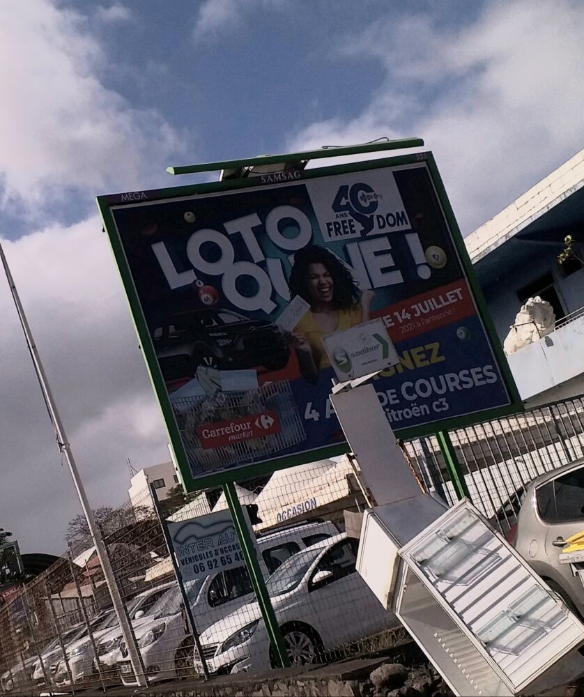 Photographiez les affiches 4×3 du Lotoquine des 40 ans de Free Dom qui fleurissent partout dans l’île et envoyez vos clichés avec la localisation de l’affiche et vos coordonnées postales à web@freedom.fr