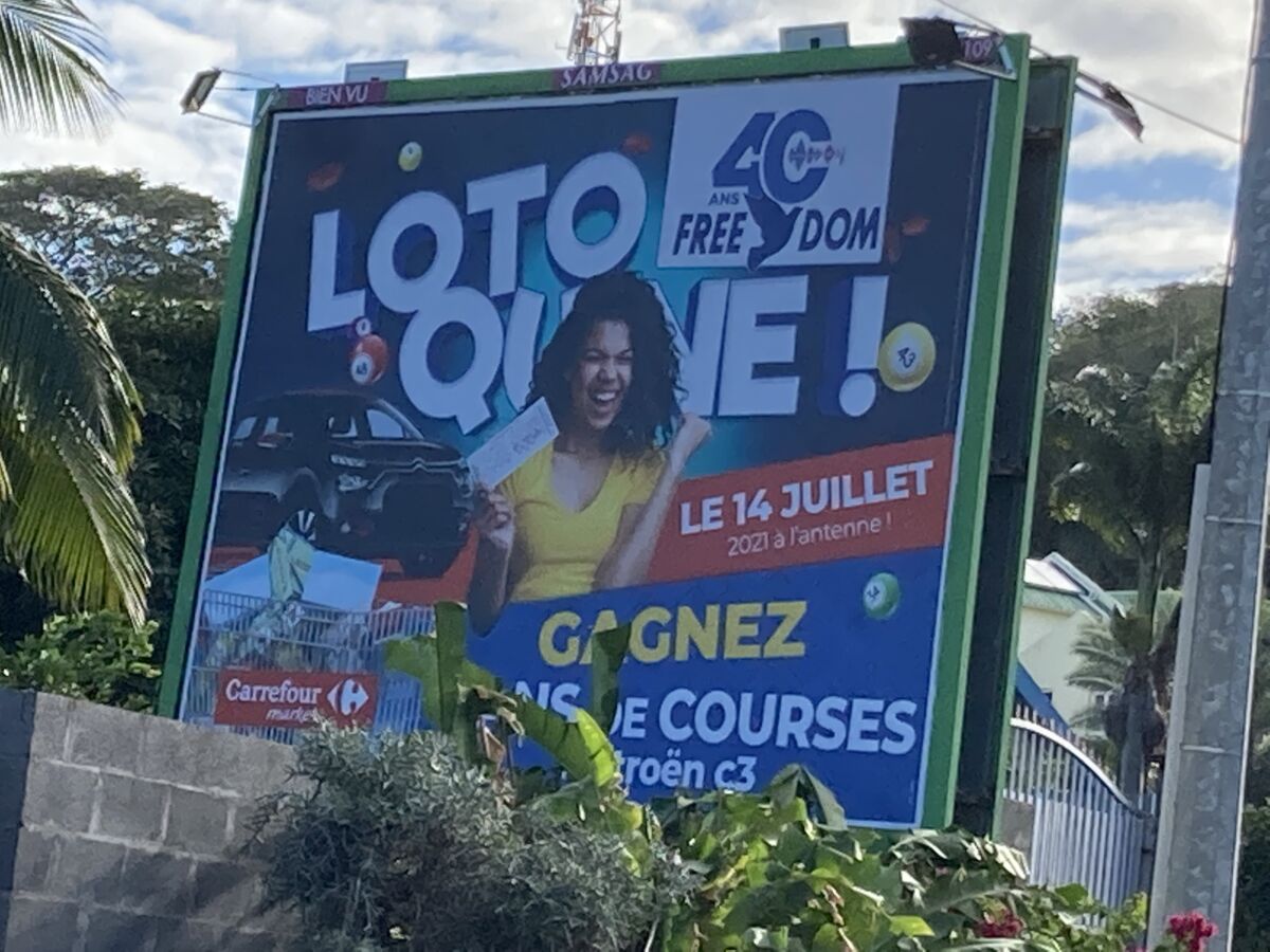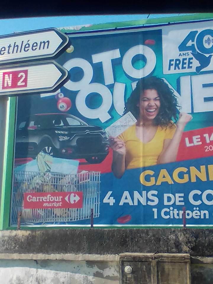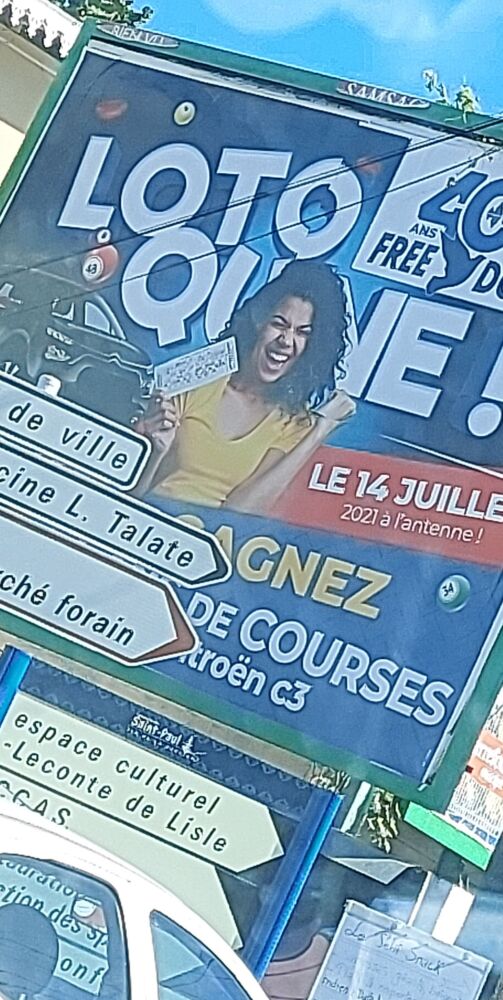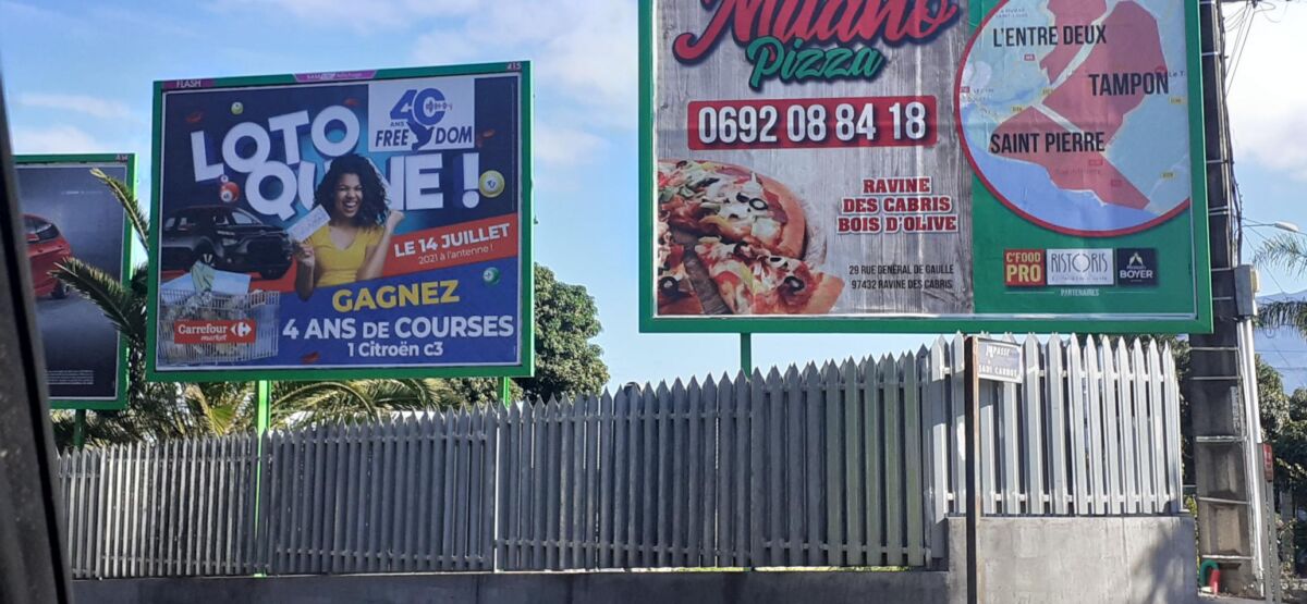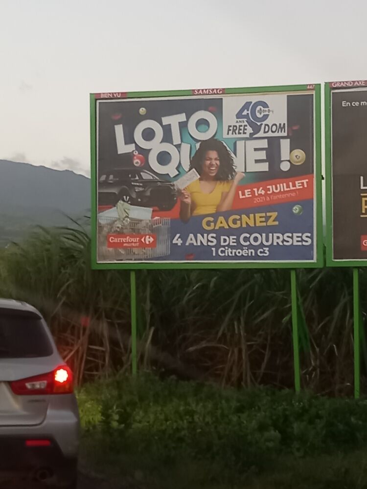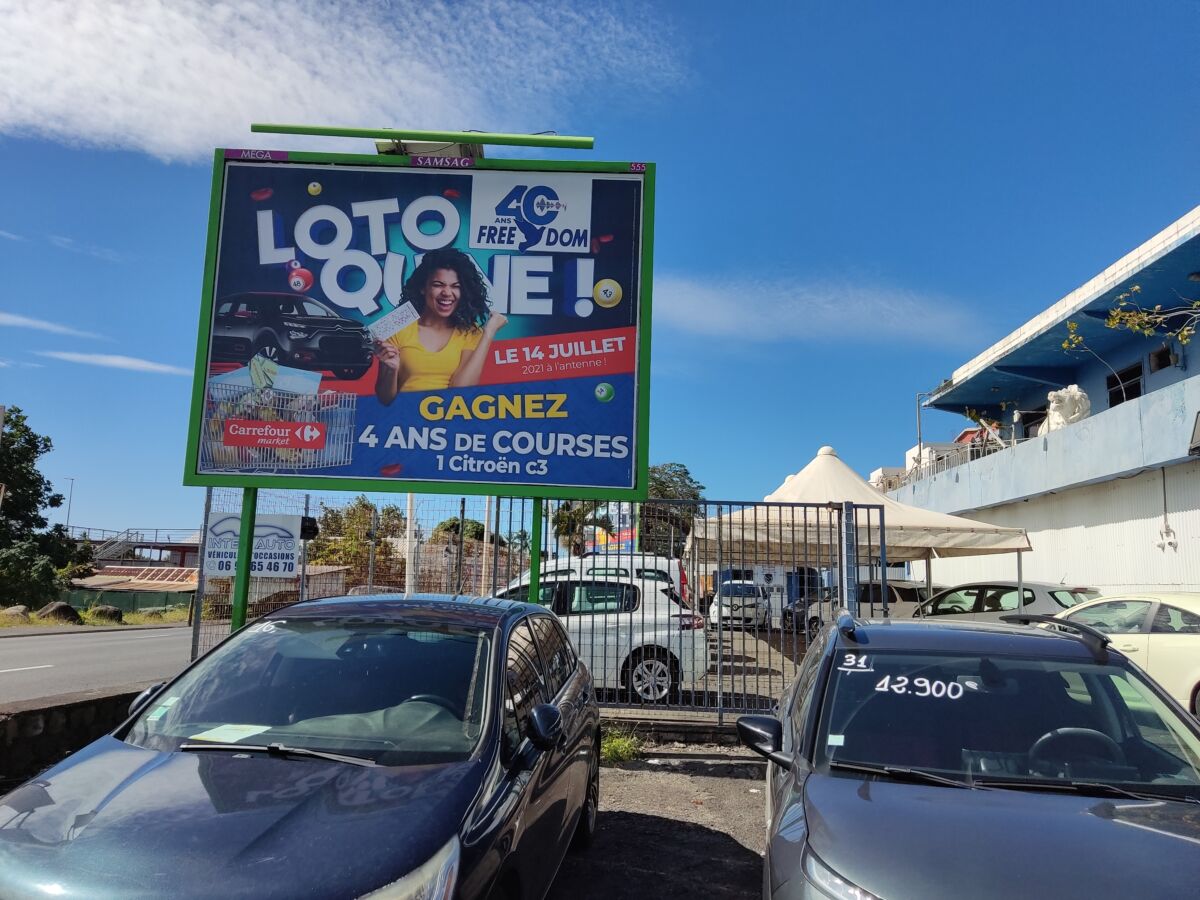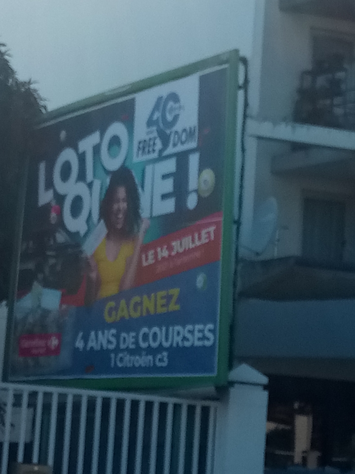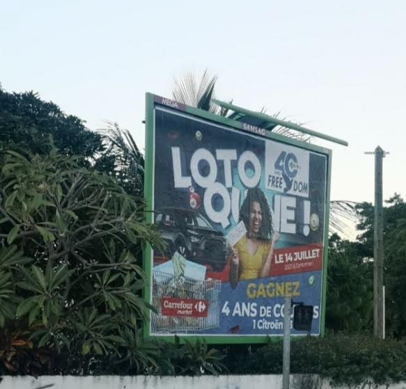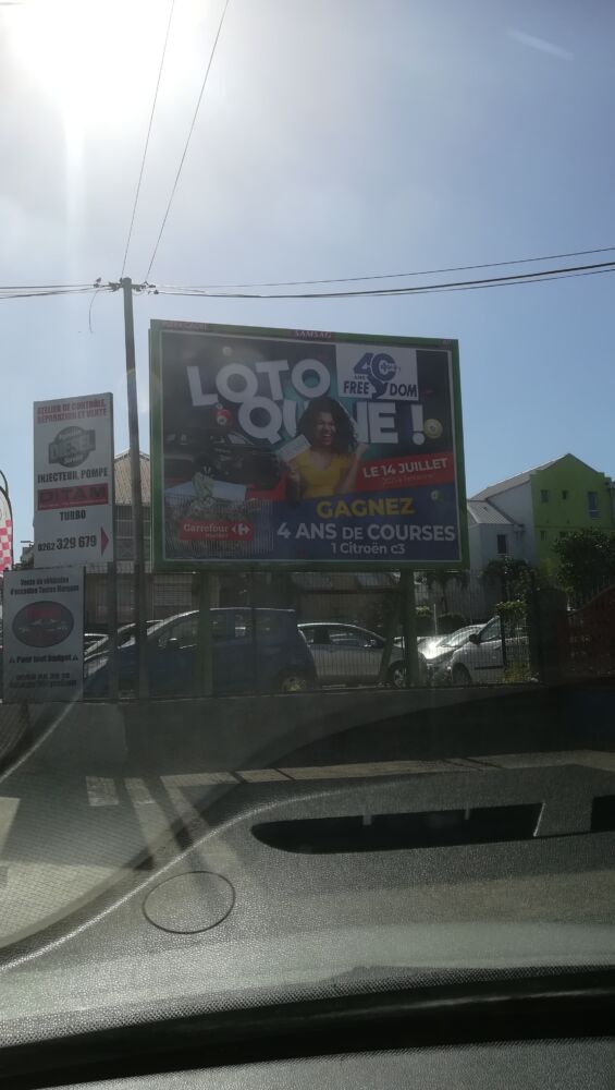 Photographiez les affiches 4×3 du Lotoquine des 40 ans de Free Dom qui fleurissent partout dans l’île et envoyez vos clichés avec la localisation de l’affiche et vos coordonnées postales à web@freedom.fr