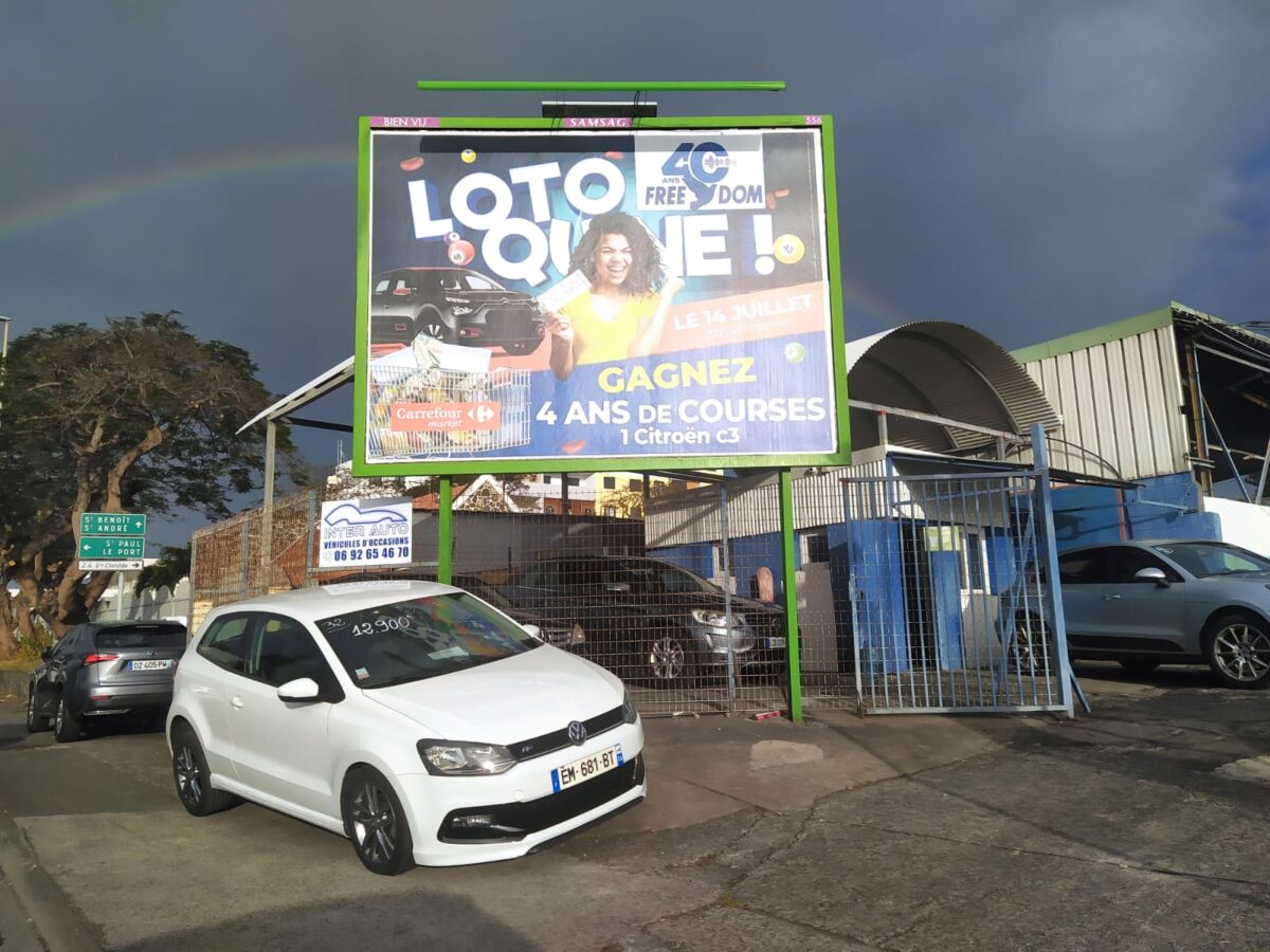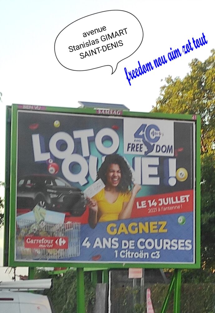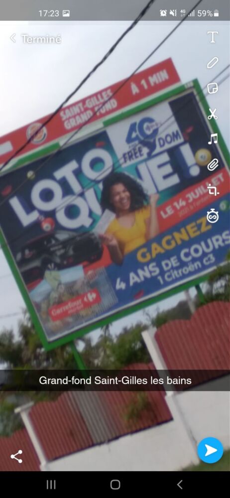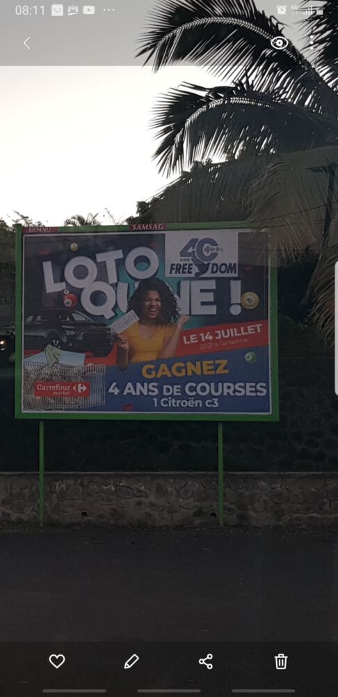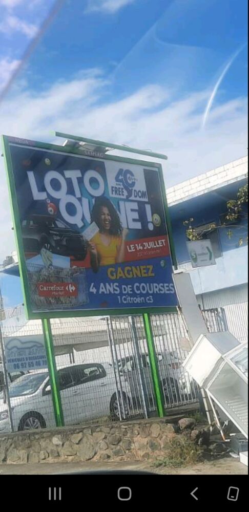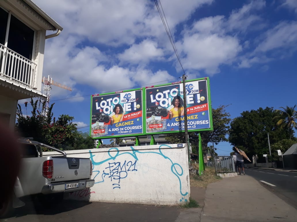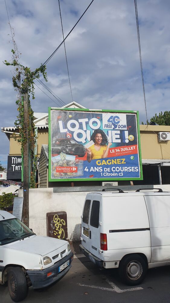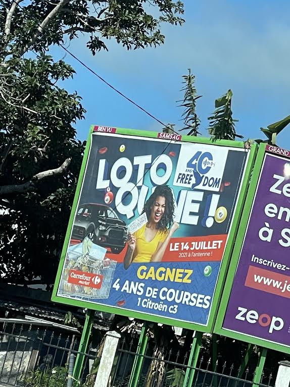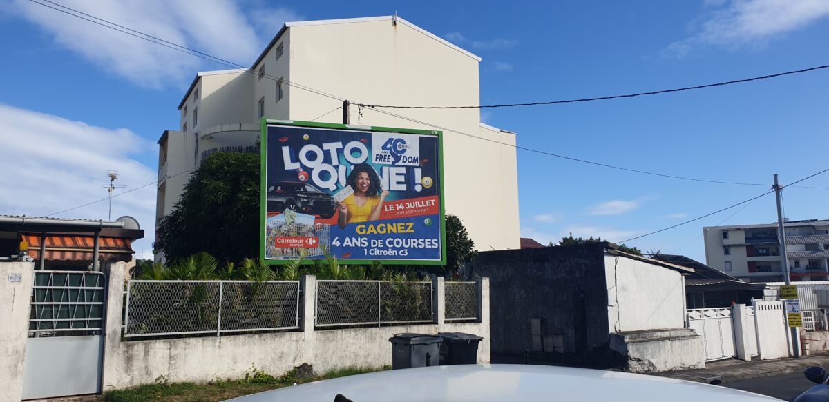 Photographiez les affiches 4×3 du Lotoquine des 40 ans de Free Dom qui fleurissent partout dans l’île et envoyez vos clichés avec la localisation de l’affiche et vos coordonnées postales à web@freedom.fr