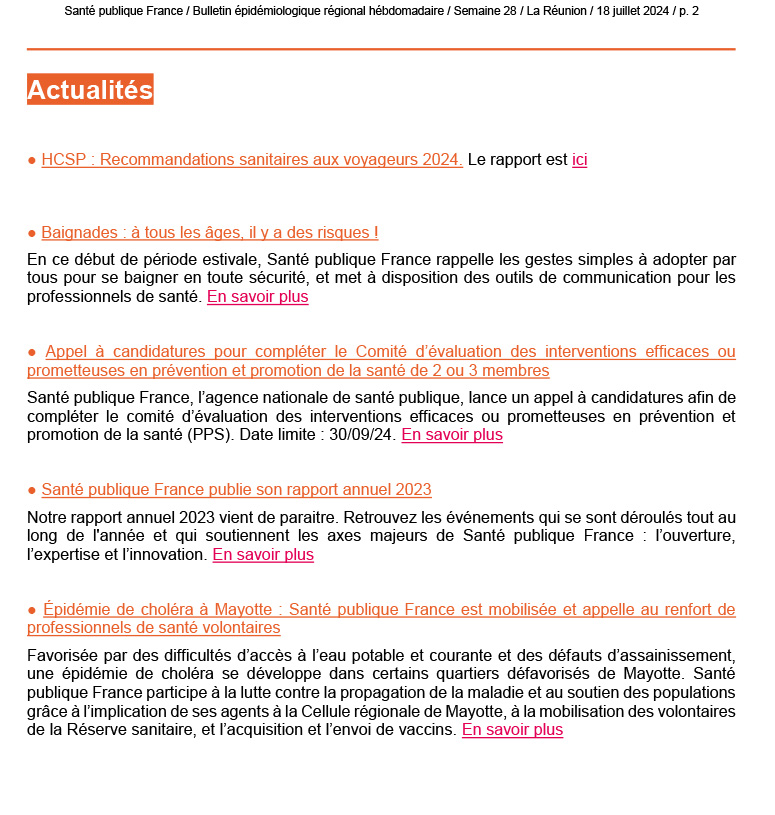 Le bulletin épidémiologique de la semaine 28 à La Réunion présente des tendances importantes en matière de santé publique.