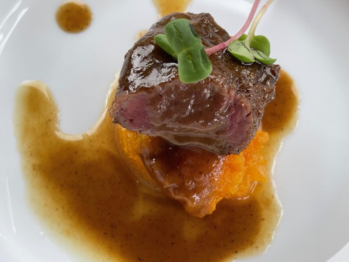 Des nouveautés qui ont pour noms : filet de bœuf grillé, beurre aux épices, gratin dauphinois et artichauts boutons; Filet de dorade en croûte d’épices et sésame noir, sauve veloutée au combava, purée de patates douces et légumes glacées; Queues de camarons poêlées, sauce curry coco, riz vénéré et fèves; Suprême de volaille rôti au café et déclinaisons d’aubergines; Magret de canard laqué comme un sarcive et déclinaisons de chouchou; Suprême de volaille en croûte de galabé, feuille à feuille de pommes de terre au curcuma et poêlée de champignons. Visuellement, ça donne ça :