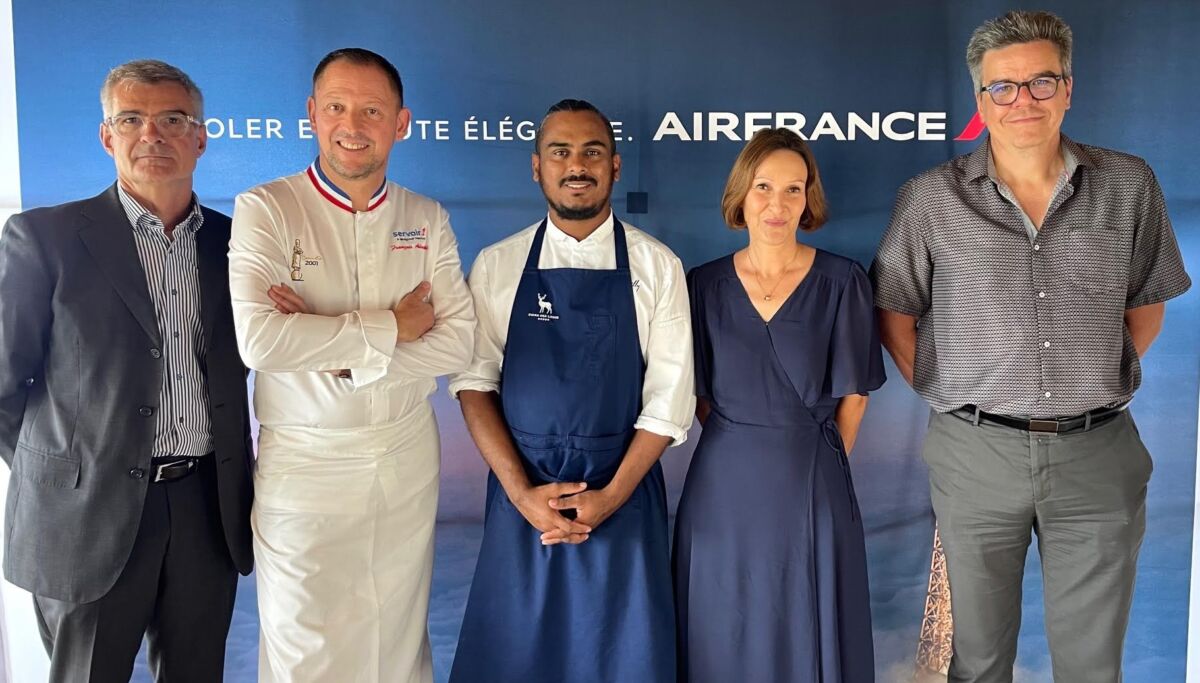 On ne change pas une équipe qui gagne. Le partenariat Dailly/Air France a manifestement bien fonctionné depuis 2022, raison pour laquelle le jeune et prestigieux chef réunionnais Jofrane Dailly a repris son billet avec la compagnie nationale pour 2 ans de plus. C’est ce qu’a annoncé, sourire en tranche papaye et visage radieux, Florence Calla, la directrice régionale d’Air France, en présence des cadres locaux de la compagnie aérienne ainsi que de François Adamski, chef corporate de Servair Paris, qui avait exceptionnellement fait le déplacement dans l’île à cette occasion.